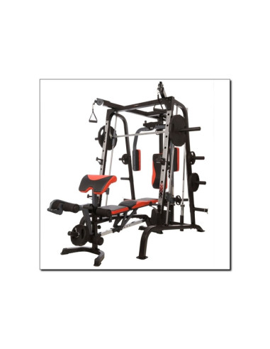 Die X2 HMS Kraftstation ist das höchste Modell der Multipresse (Smith machine) im Angebot der Marke HMS. Im Vergleich mit der X1 Kraftstation hat sie die Lager, mit denen ihr Mechanismus reibungslos funktionieren kann, und zwei Arten der Latzüge, Griffe zum Aufhängen freier Gewichte und ein Curlpult mit einem Griff für Gewichte. Das zentrale Element der Multipresse bildet die Bank, die ausgebaut werden kann.