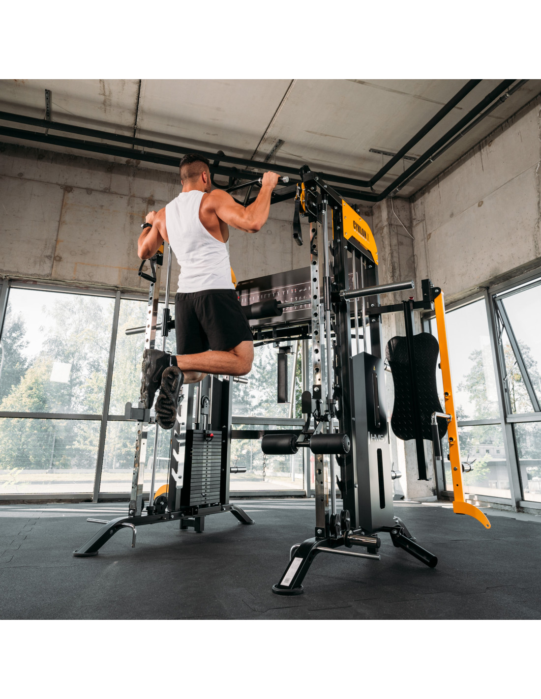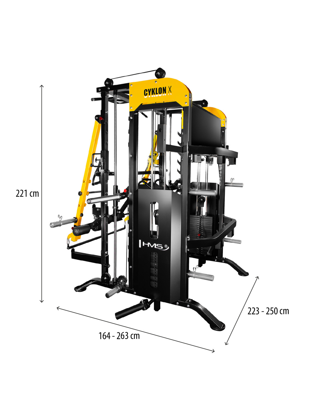 Der Cyklon X wurde aus hochwertigem Stahl gefertigt und ist daher auch bei starker Beanspruchung extrem stabil und langlebig. Der stabile Sockel garantiert absolute Sicherheit bei jeder Übung, da die Gefahr des Wackelns des Geräts ausgeschlossen ist. Die Lifter und der Laufkran bewegen sich dank der präzise abgestimmten Lager reibungslos und geräuschlos.