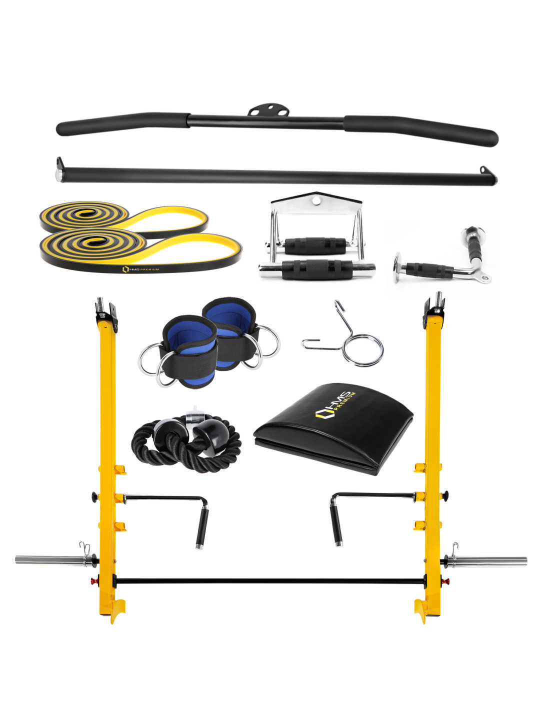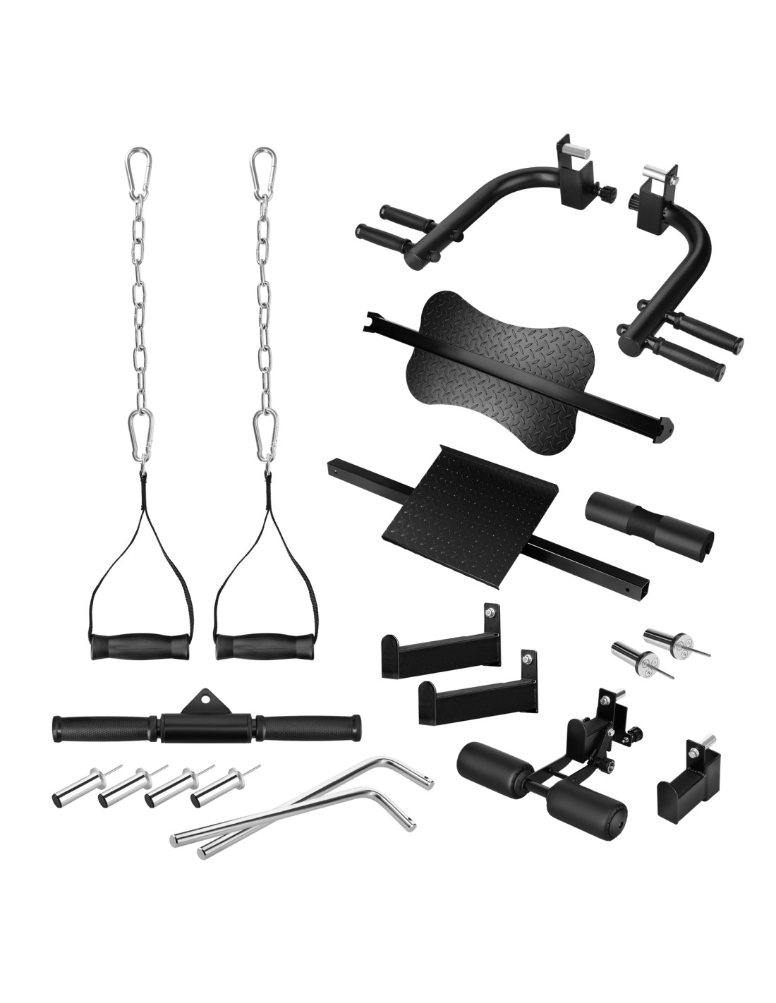 Griffe - das Set enthält eine Reihe verschiedener Griffe: Standardgriffe, kurzer gerader Griff, Overhead-Lift-Griff, Landminen-Hantelgriff, Seil (Trainingsseil), Dreiecksgriff, Doppelgriff, Ketten und Griffin-Speichergriff