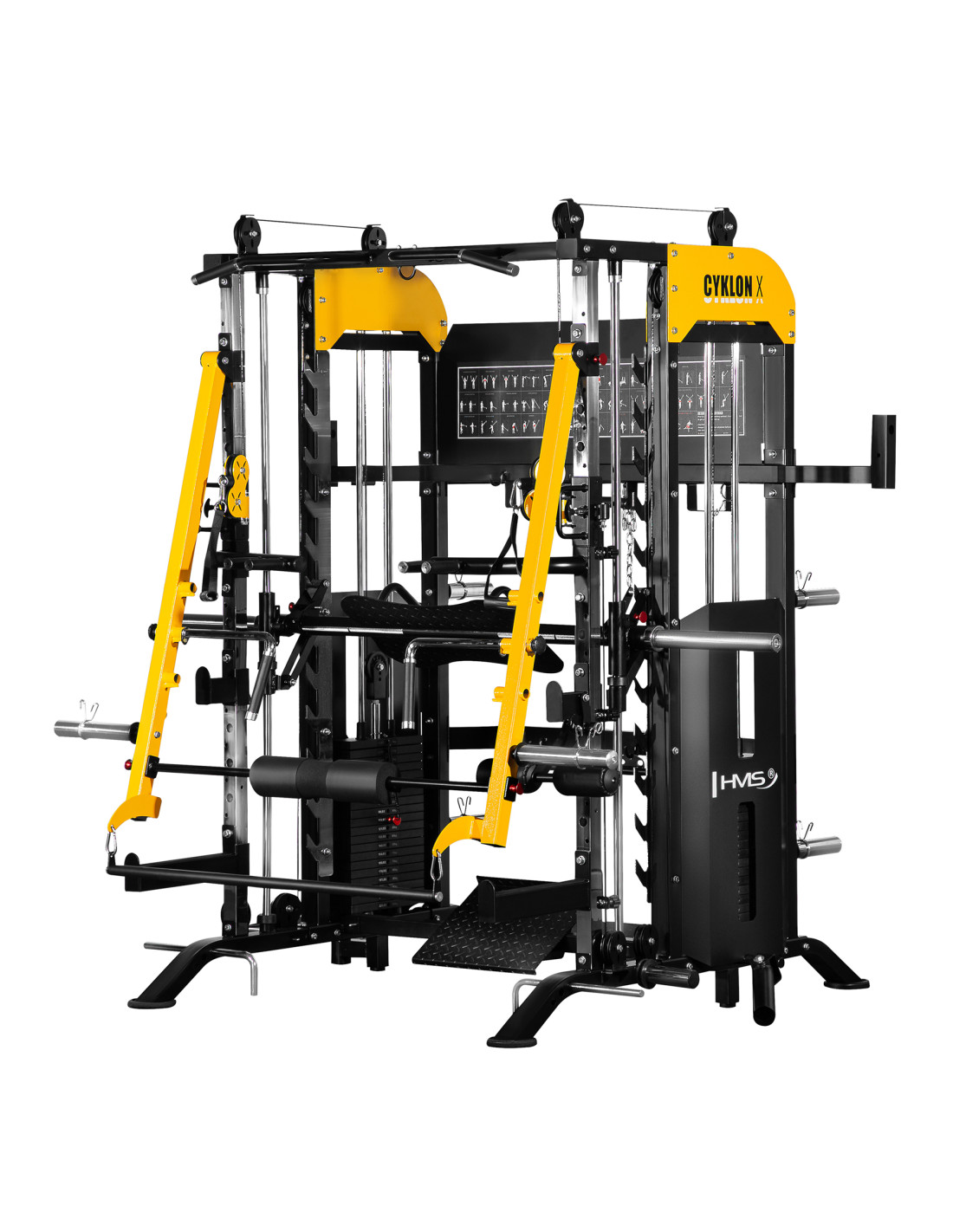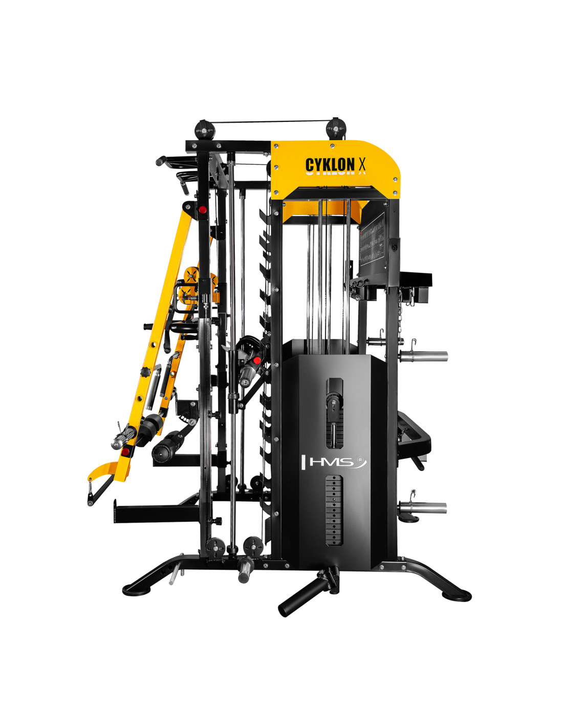 Cyklon X ist ein revolutionärer Trainingsatlas, mit dem Sie alle Muskelpartien umfassend trainieren können, ohne die Geräte wechseln zu müssen. Ein einziges Gerät ersetzt das gesamte Fitnessstudio und bietet höchste Qualität und endlose Trainingsmöglichkeiten. Er bietet mindestens acht Belastungsmöglichkeiten - Stack, freie Gewichte, bewegliche Arme, Widerstandsbänder, Lift, Deckenkran, Einsatz des Körpergewichts und sogar eine Kombination ausgewählter Gewichte.