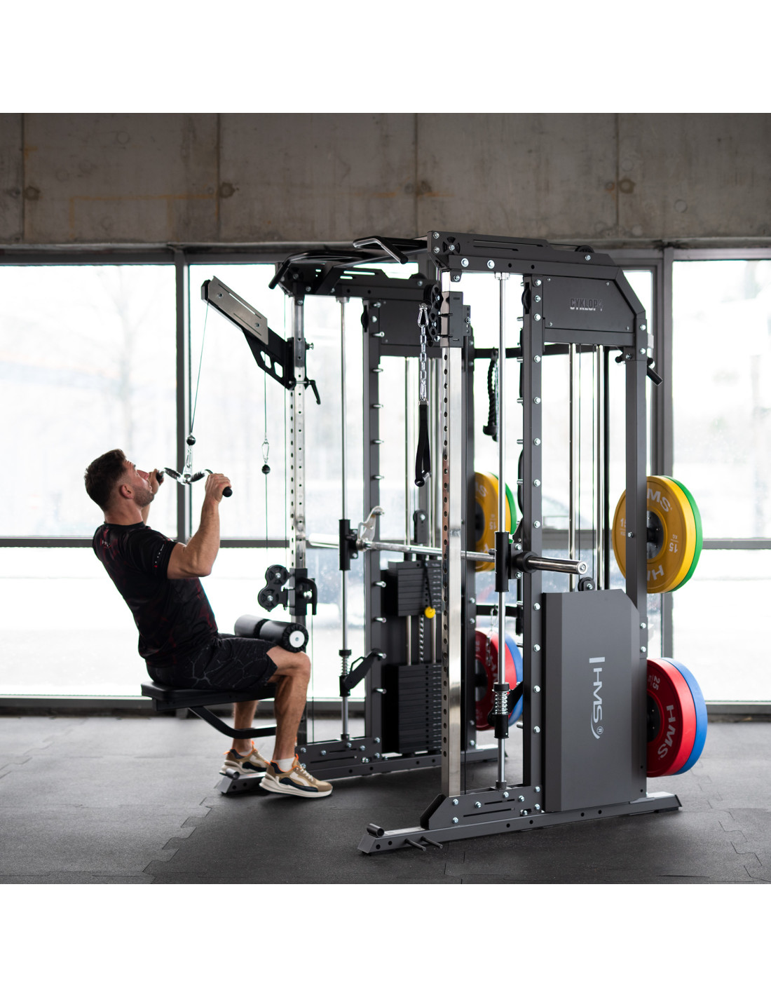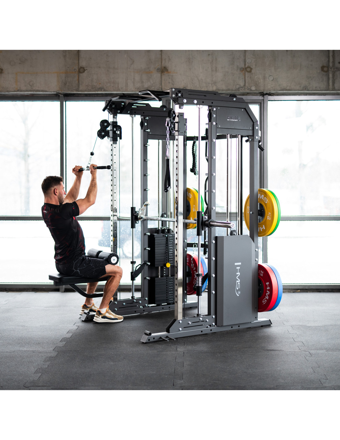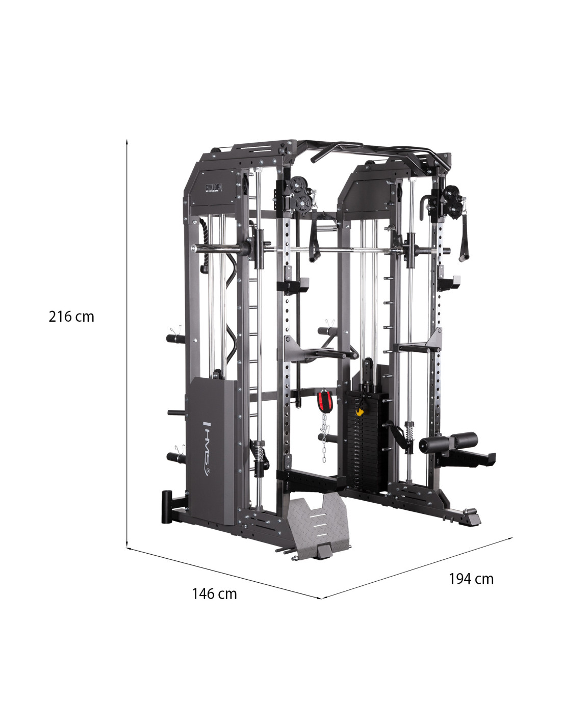Cyklop 4 е продукт на HMS, който съчетава предимствата на мултипреса (Smith Machine) и станция за тренировки с тежести. Тя позволява комфортни упражнения за всички части на тялото. Cyklop 4 е идеален за хора, които искат да подобрят физическата си форма, формата на тялото, мускулната си маса или издръжливост.