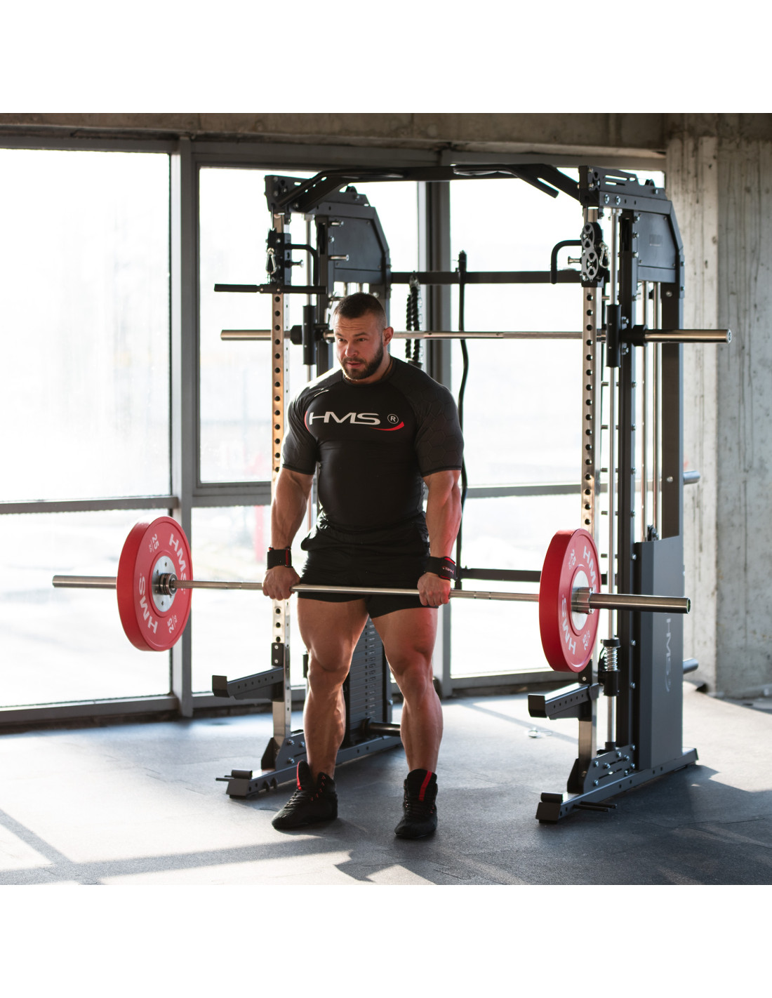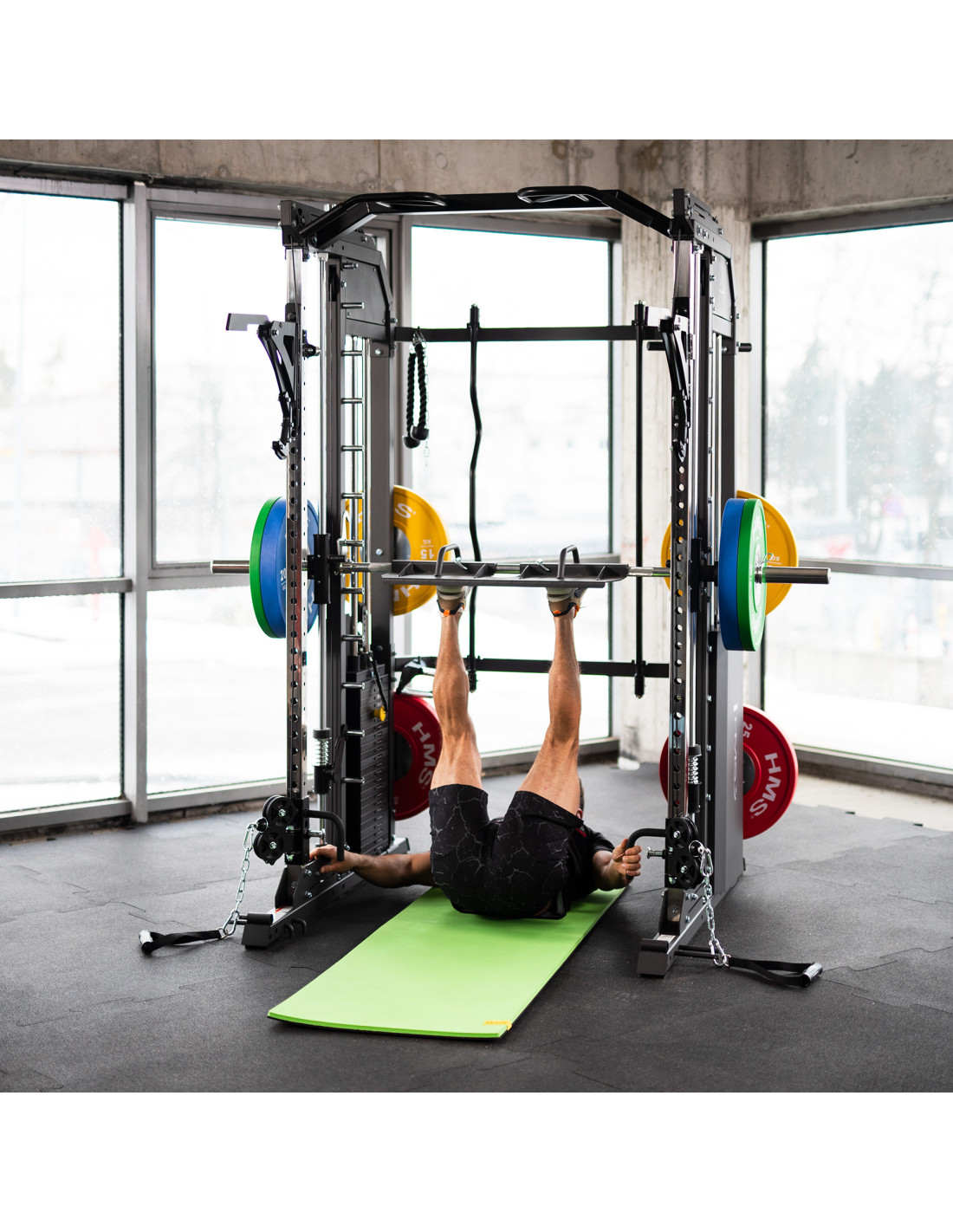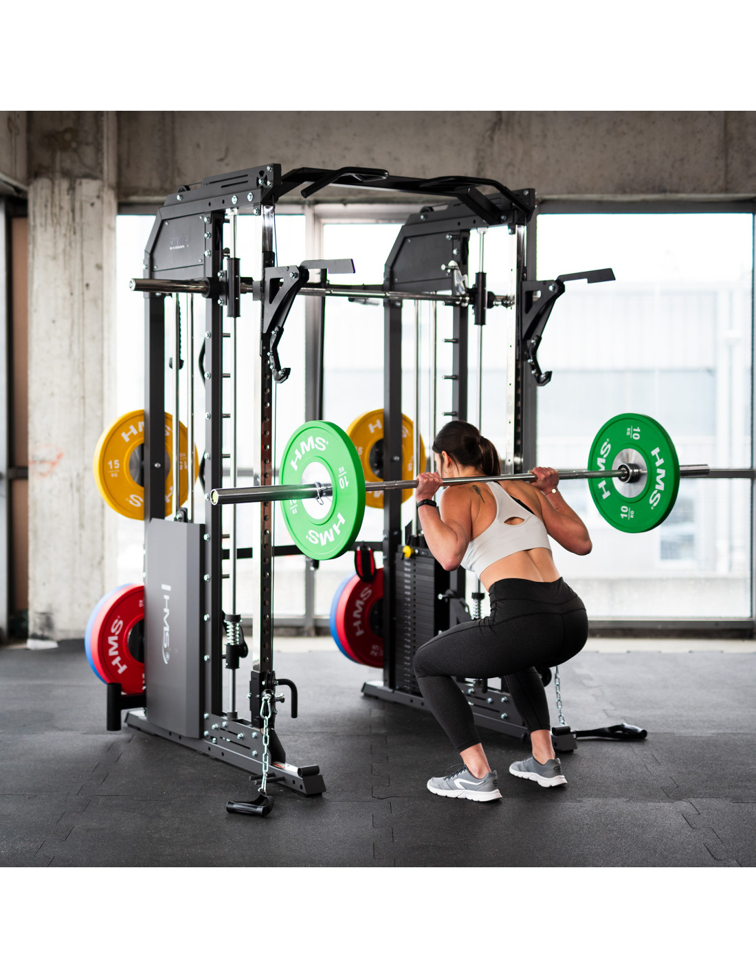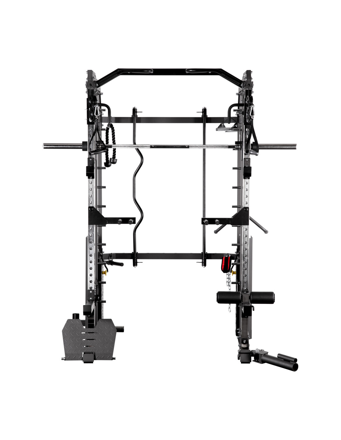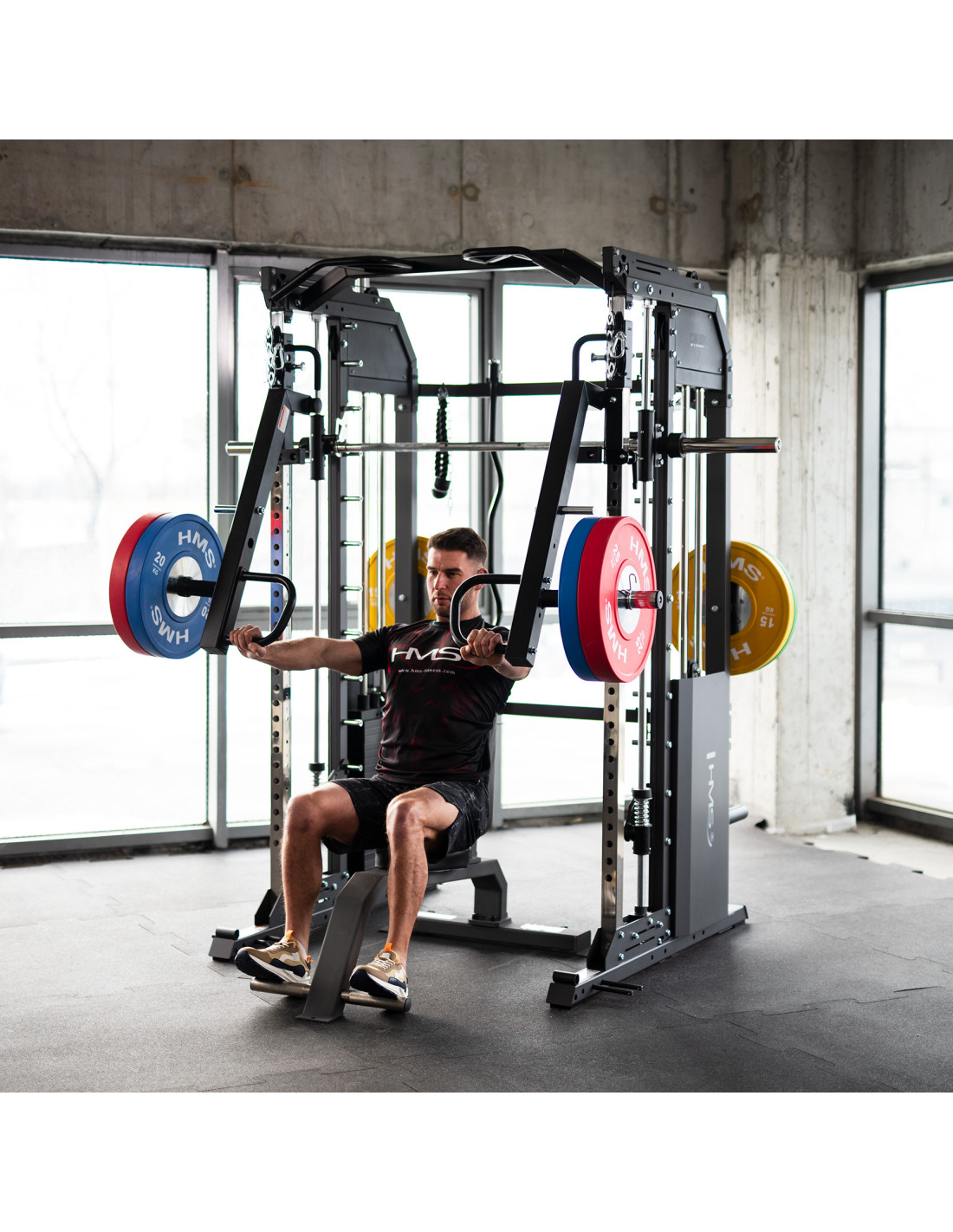 Машина Смит - позволява комплексни тренировки и има регулируема височина, както и гарантира безопасност срещу падане на товара.