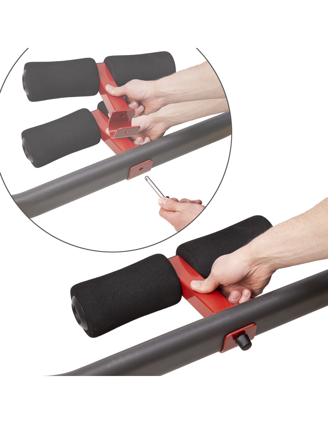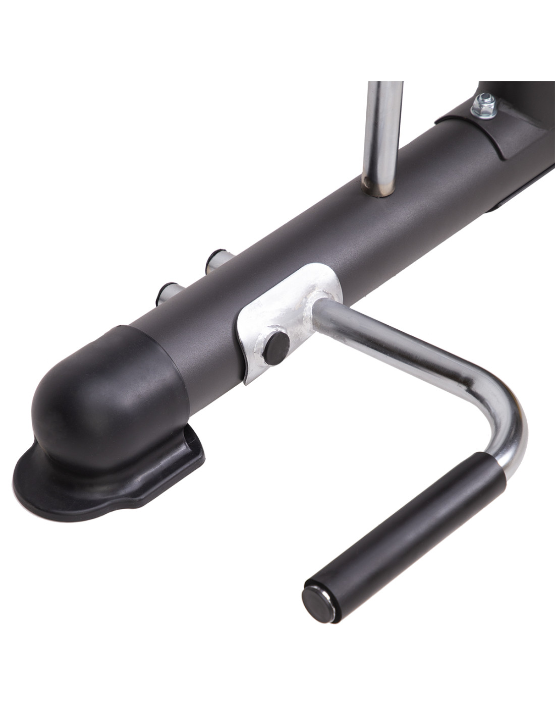Мултипресата X3 е изработена от най-висококачествени материали. Това е здрав уред за упражнения с максимална товароносимост от 136 кг. Стелажите, монтирани отзад, правят съхранението на табели с тежести лесно. Назъбената щанга пасва удобно в ръката. Благодарение на ключалките и идеалния диаметър на щангата, плочите с тежести не се клатят и не се движат.