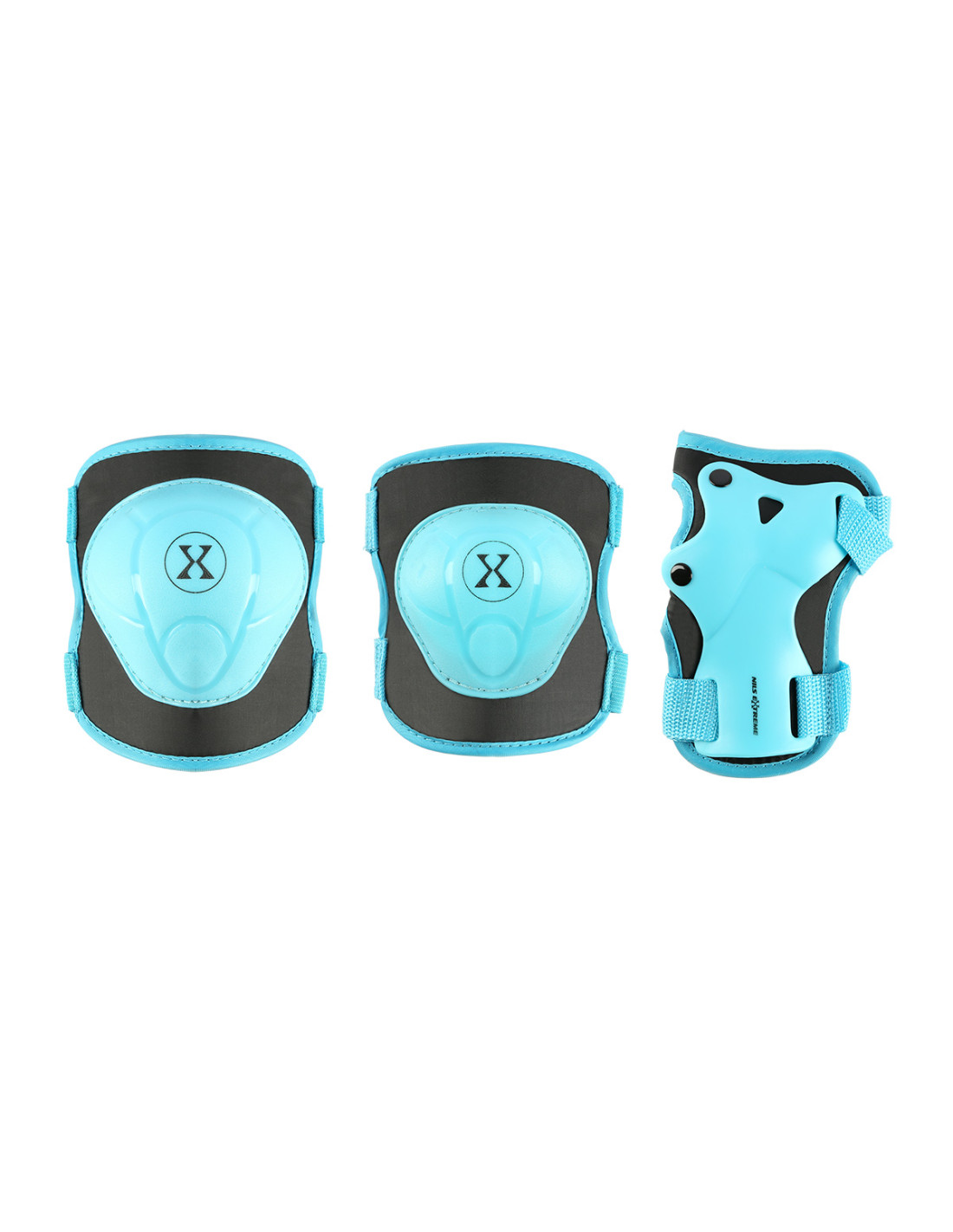 Комплектът протектори се състои от подложки за китки, лакти и наколенки. Изработен е от висококачествени материали. Добре оформената обвивка на протекторите е изработена от здрава, но лека пластмаса.