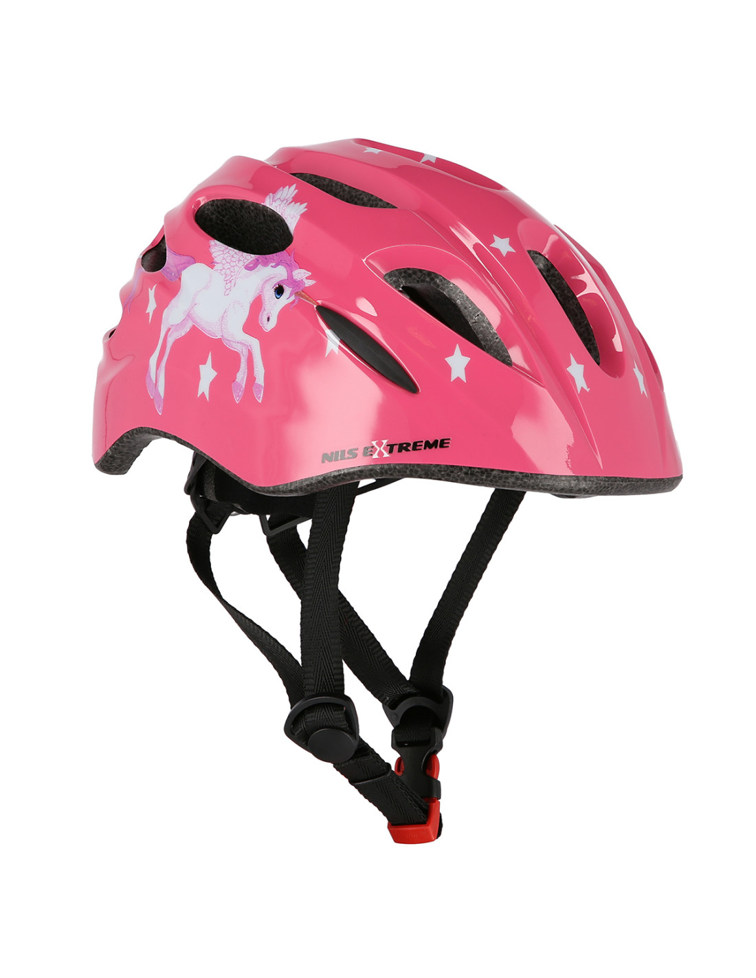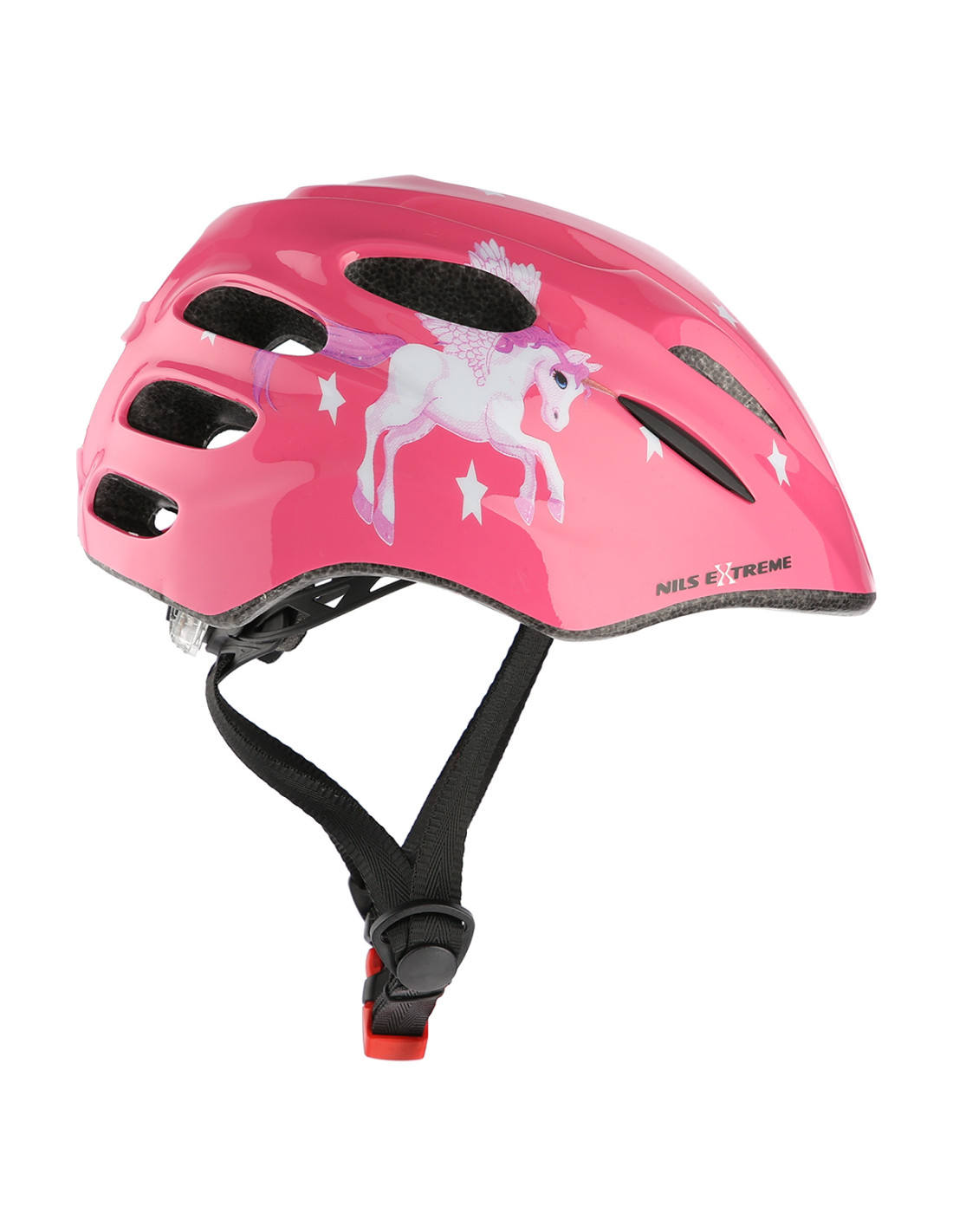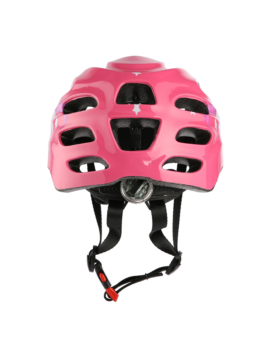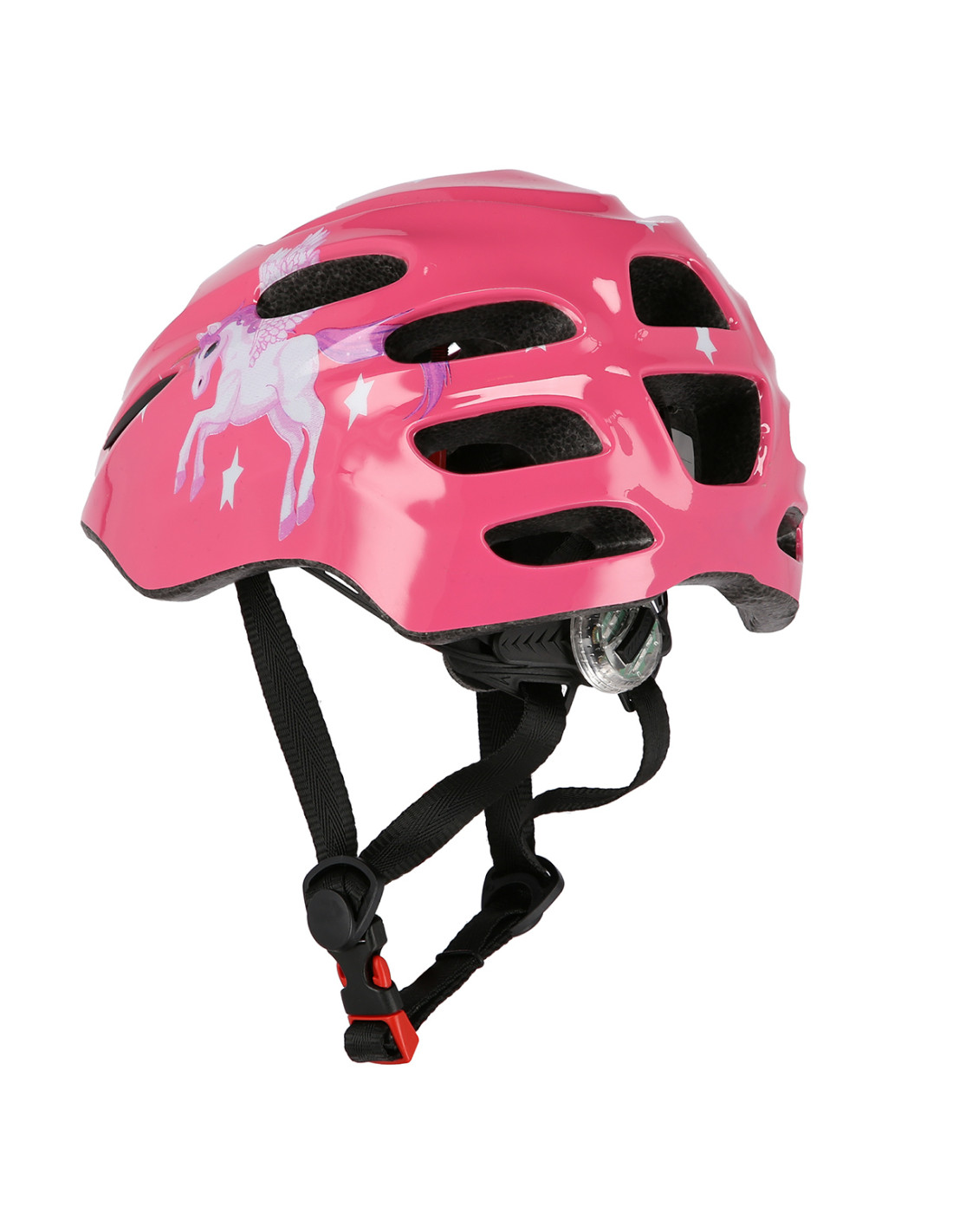 Каската се предлага в различни размери и разполага със система, която позволява перфектно прилягане. Това се постига с помощта на въртящата се ключалка на гърба на каската. Каишката за брадичката с нейния разделител за каишка помага за предотвратяване на подхлъзване. Бързото сваляне на каската също не е проблем. Много интересна и полезна функция е LED светлината на гърба на каската. Това прави децата по-видими за родителите си. Тази функция също ще донесе повече радост на детето.