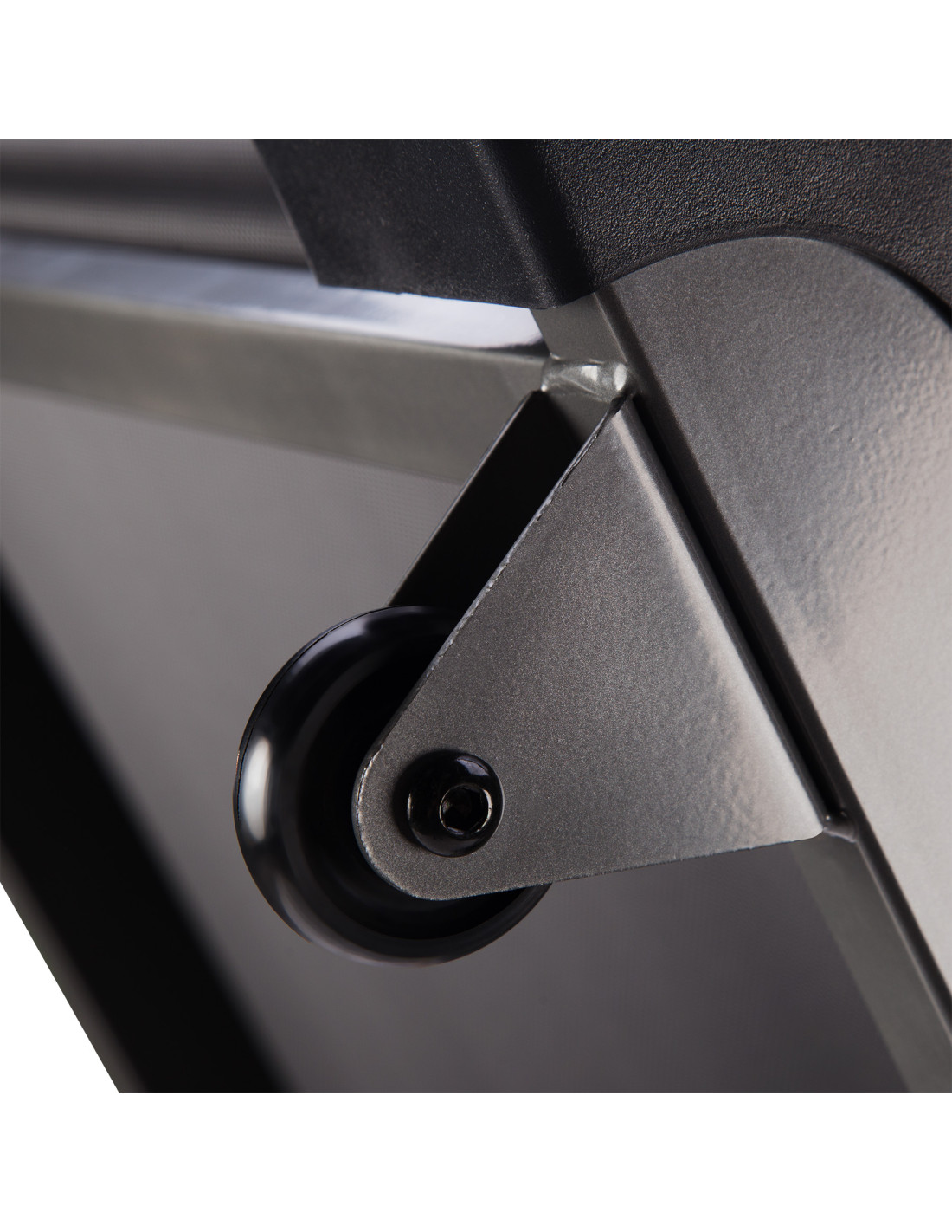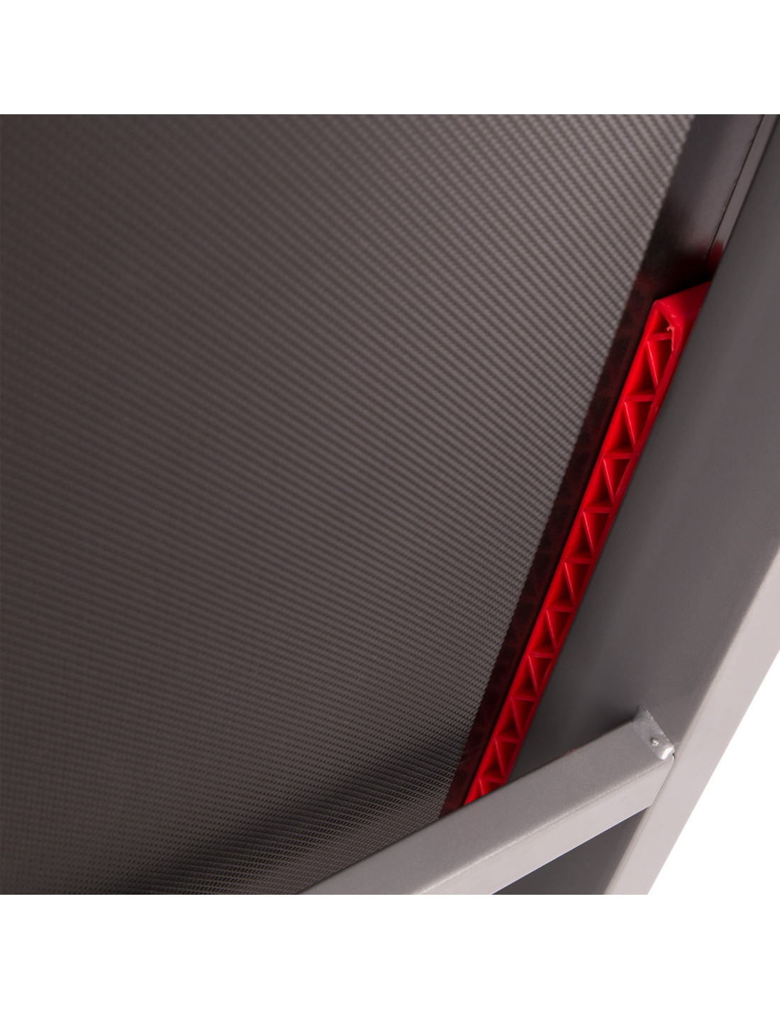 Голям колан за бягаща пътека, който осигурява комфорт по време на тренировка, е омекотен от 4 еластомера и 2 гумени амортисьора, които осигуряват леко и еластично бягане.