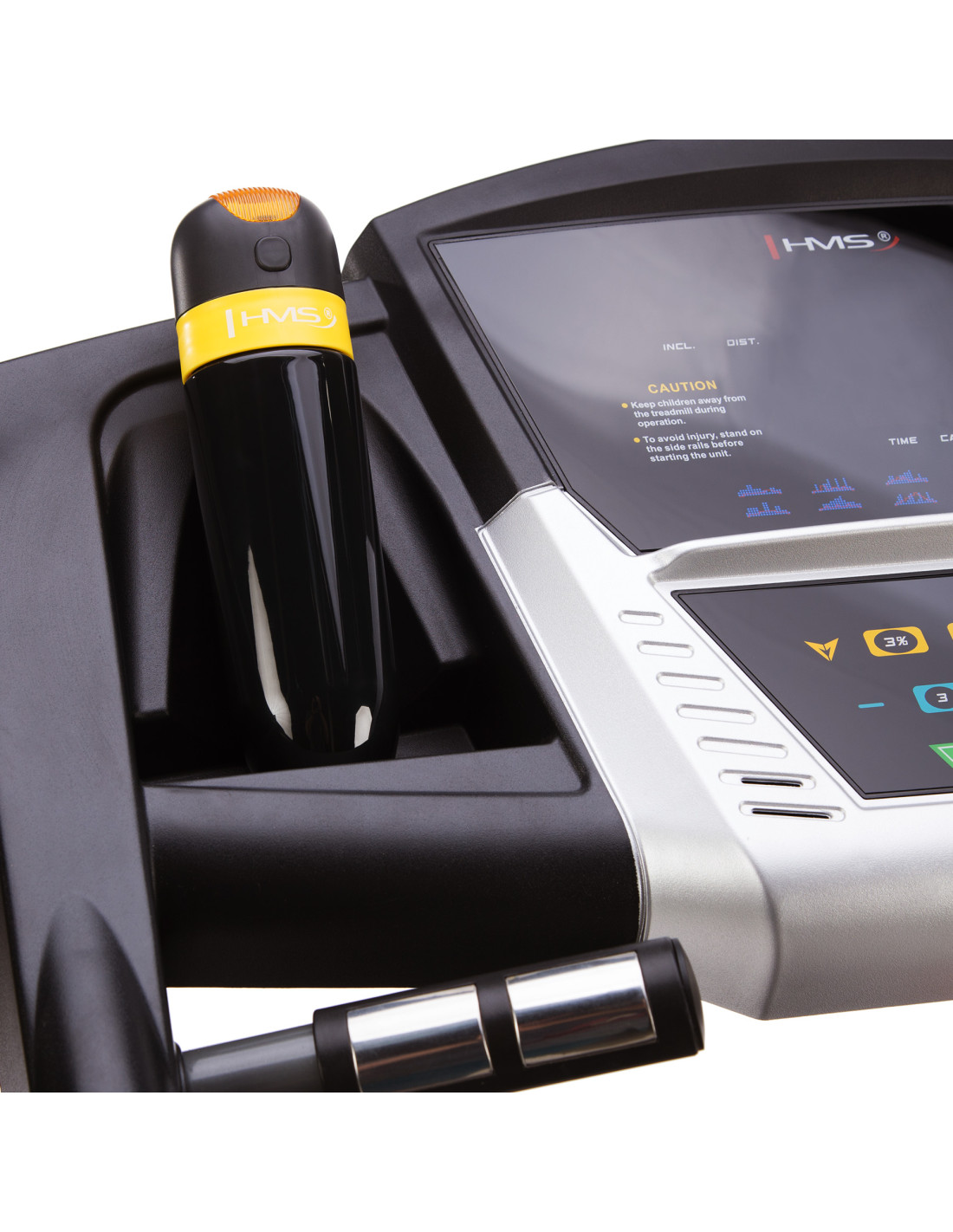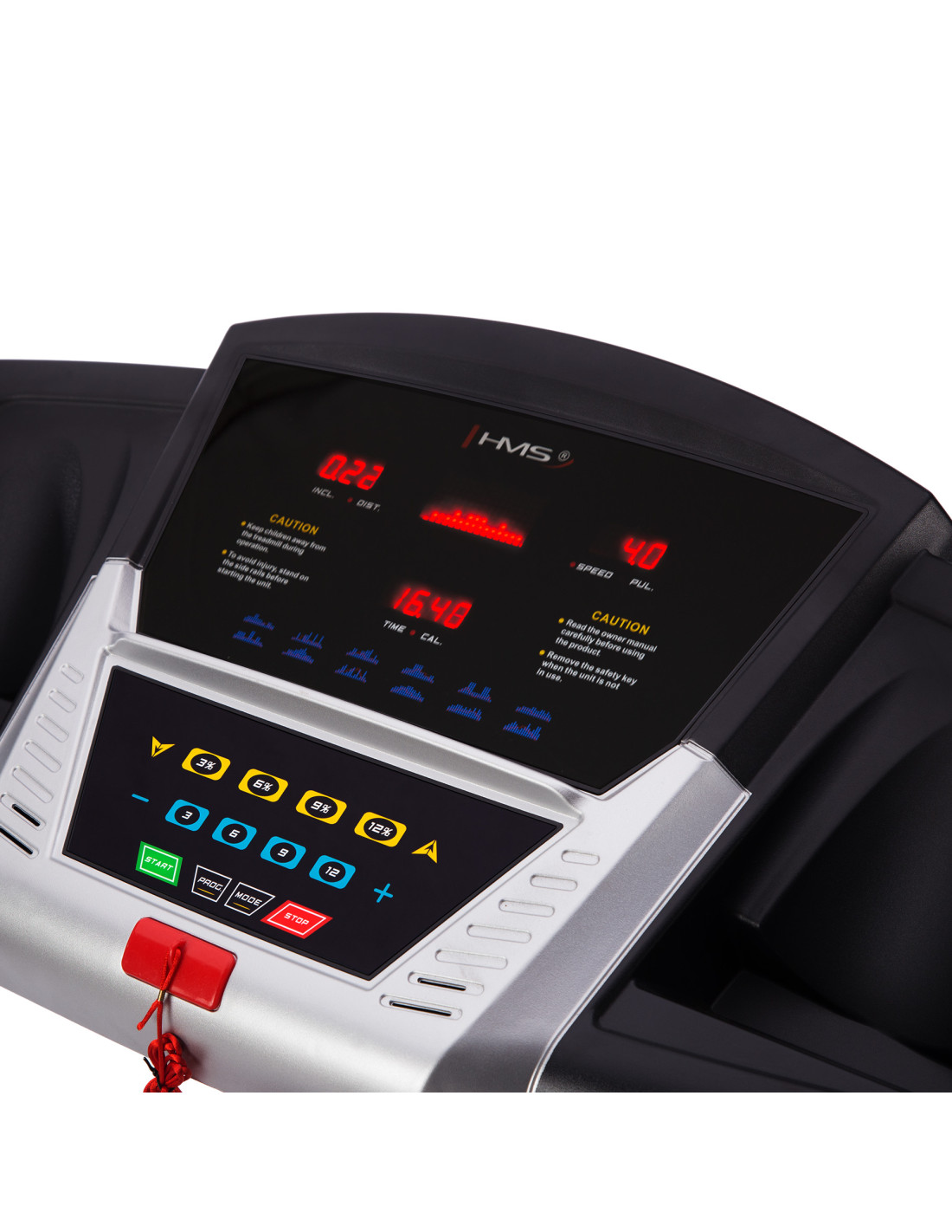 Широкият контролен панел с голям компютърен екран ви позволява лесно да регулирате настройките. Бутоните за бърз избор на програми за скорост и наклон са особено полезни. Компютърът разполага с 99 програми и сензорен екран. Бягащата пътека HMS BE8535 разполага с широк диапазон на регулиране на наклона и скоростта на колана на бягащата пътека, което ви позволява да изпълнявате различни тренировки. Bluetooth връзката и интегрираните високоговорители ви позволяват да тренирате, докато слушате музика, което ви позволява да поддържате постоянен ритъм и да тренирате без прекъсване. Лесната за използване система за сгъване прави бягащата пътека изключително пестяща място. За да се увеличи безопасността при сгъване на бягащата пътека, са монтирани два допълнителни газови амортисьора, които забавят спускането на бягащата пътека.