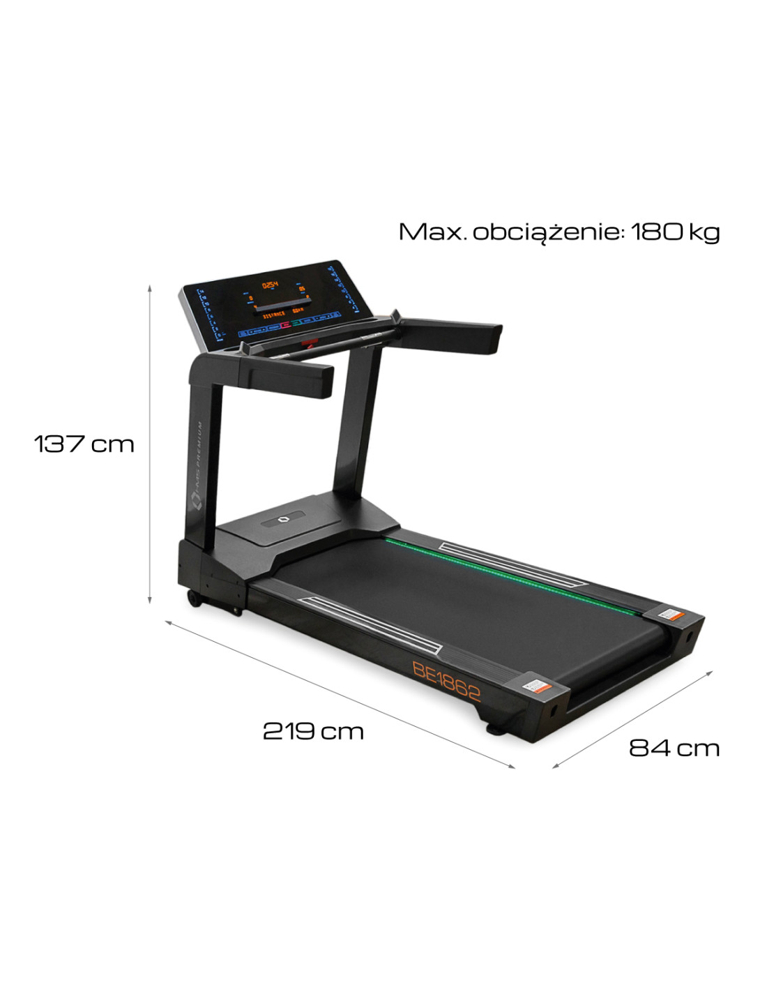 Das ergonomische Bedienfeld mit dem übersichtlichen LED-Bildschirm sorgt dafür, dass ein Training ungestört verläuft und Sie problemlos das entsprechende Programm für Sie wählen können. Zur Änderung der Geschwindigkeit sowie des Steigungswinkels, verwenden Sie Joysticks. Damit können Sie die Trainingsparameter auf eine einfache und schnelle Weise an Ihre Bedürfnisse anpassen. Man muss darauf hinweisen, dass das BE1862 Laufband mit einem für ältere Personen angepassten Programm ausgestattet ist. In diesem Fall ist es nicht notwendig, sich um eine plötzliche Geschwindigkeitsänderung oder einen übermäßigen Steigungswinkel zu sorgen.