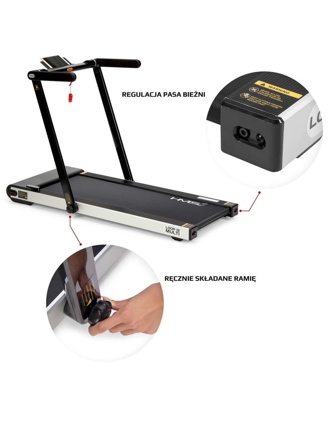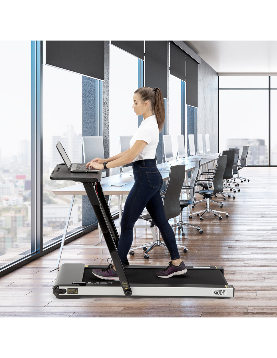 LOOP12 MULTI steht für die Technologie des 21. Jahrhunderts. Es ist modern und intuitiv zu bedienen. Das unterscheidende Merkmal dieses Modells ist der Laufband-Schreibtisch, der an der Konsole befestigt wird.