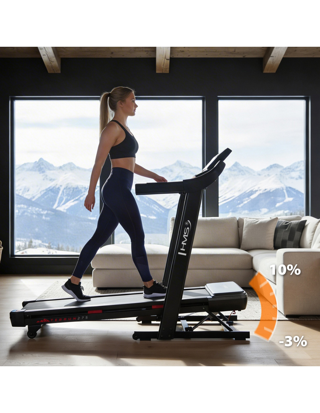 Бягащата пътека TERRUN275 предлага уникално регулиране на наклона от -3% до 10% , симулирайки бягане както нагоре, така и надолу. Тази функция значително повишава ефективността на тренировката, активира различни мускулни групи и подобрява издръжливостта и координацията.