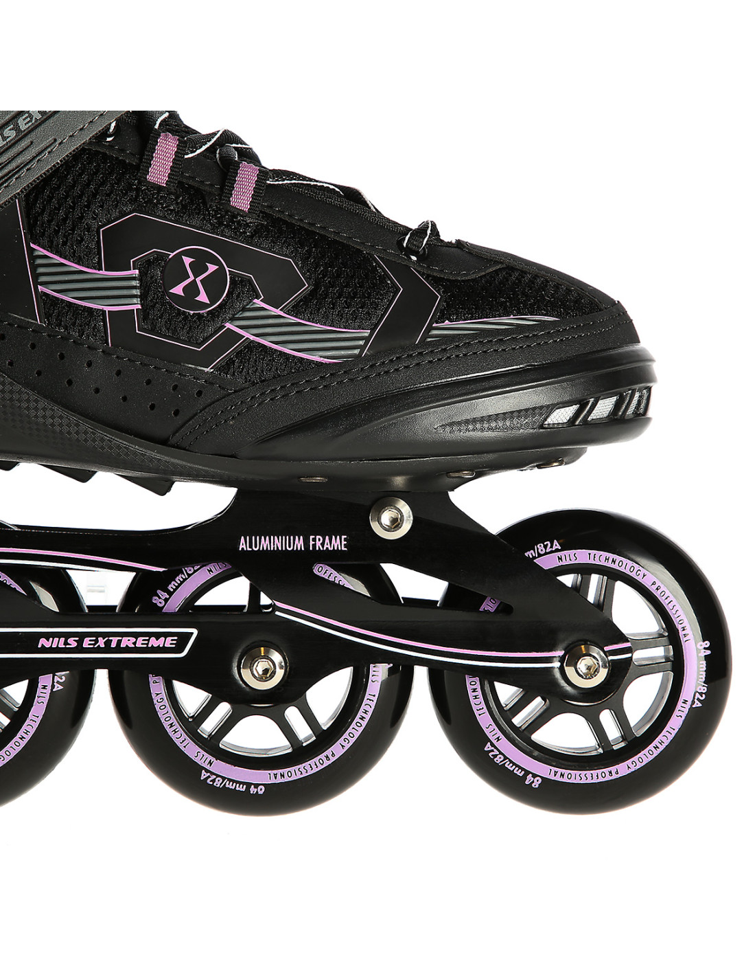 Ролевите кънки NA9157 Nils Extreme са предназначени за средно напреднали и напреднали скейтъри. Подходящи са за развлекателна употреба. Техният атрактивен дизайн се характеризира с интересен и модерен десен и най-вече с висококачествените материали, вложени в изработката им. Тези материали осигуряват и високо ниво на комфорт.