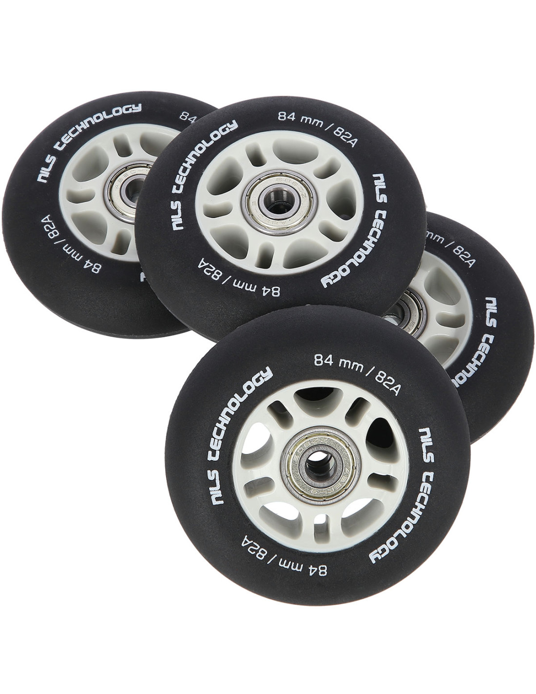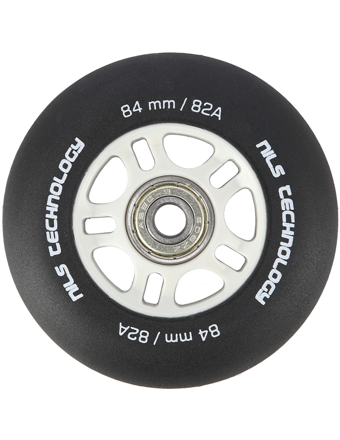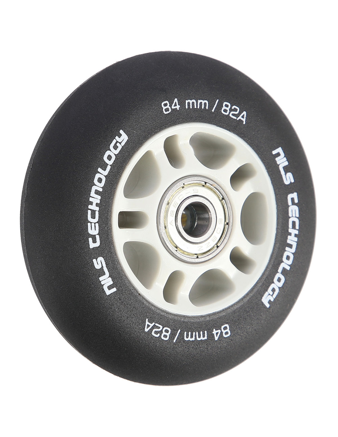 Черните матови PU колела NILS EXTREME са изработени от полиуретан. Ключовите им параметри включват твърдост и диаметър. Твърдостта на колелата влияе както на комфорта при каране, така и на сцеплението. Колелата PU-82A осигуряват добро абсорбиране на удари и абсорбират неравности по всички повърхности. Диаметърът влияе пряко върху скоростта. Колелата с по-голям диаметър ви позволяват да достигнете по-високи скорости, но не предлагат същата маневреност като колелата с по-малък диаметър. Лагерът ABEC 9 Chrome е много прецизен лагер, изработен от най-висококачествена хромирана стомана. Характеризира се с най-ниското съпротивление при търкаляне, което според американските класове на толеранс на Комитета по инженерство на пръстеновидни лагери (ABEC), се превръща в най-висока скорост. Важен параметър на този лагер е неговата ексцентричност, т.е. закръглеността на вътрешната повърхност на пръстена, която е само 0,0012 мм.