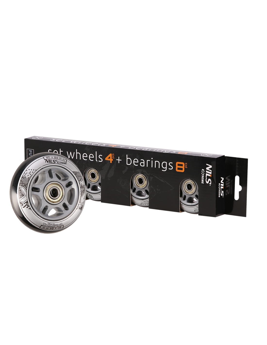 Колелата NILS EXTREME BLACK PU са изработени от полиуретан. Ключовите им параметри включват твърдост и диаметър. Твърдостта на колелата влияе както на комфорта при каране, така и на сцеплението. Колелата PU-82A осигуряват добро абсорбиране на удари и абсорбират неравности по всички повърхности. Диаметърът влияе пряко на скоростта. Колелата с по-голям диаметър ви позволяват да достигнете по-високи скорости, но не предлагат същата маневреност като колелата с по-малък диаметър. Лагерът ABEC 9 Chrome е много прецизен лагер, изработен от най-висококачествена хромирана стомана. Характеризира се с най-ниското съпротивление при търкаляне, което според американските класове на толеранс на Комитета по инженерство на пръстеновидни лагери (ABEC), се превръща в най-висока скорост. Важен параметър на този лагер е неговата ексцентричност, т.е. закръглеността на вътрешната повърхност на пръстена, която е само 0,0012 мм.