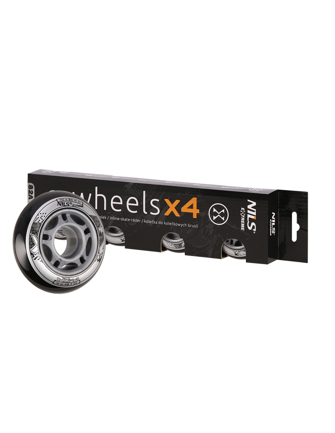 Колелата PU BLACK NILS EXTREME са изработени от полиуретан. Най-важните им параметри са твърдостта и диаметъра. Твърдостта на колелата влияе както на комфорта на возене, така и на сцеплението. Колелата PU-82A осигуряват добра абсорбция на удари и поглъщат неравности на всякакви повърхности. Диаметърът пряко влияе на скоростта. Колела с по-голям диаметър ви позволяват да достигнете по-високи скорости. Те обаче не осигуряват толкова добра маневреност, колкото колелата с по-малък диаметър.