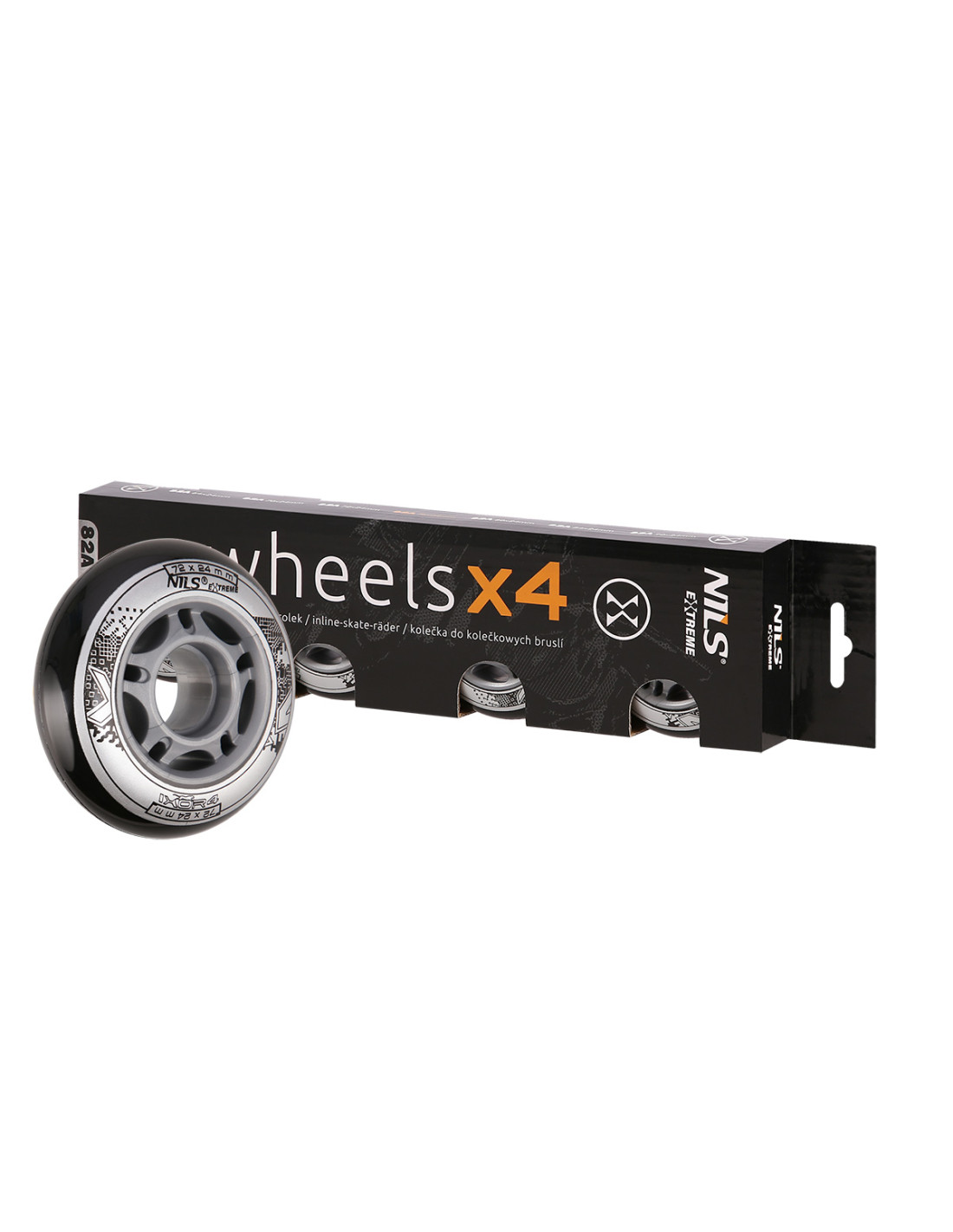 Колелата PU BLACK NILS EXTREME са изработени от полиуретан. Най-важните им параметри са тяхната твърдост и диаметър. Твърдостта на колелата влияе както на комфорта на возене, така и на сцеплението. Колелата PU-82A осигуряват добра абсорбция на удари и поглъщат неравности по всякакви повърхности. Диаметърът пряко влияе на скоростта. Колела с по-голям диаметър ви позволяват да достигнете по-високи скорости. Те обаче не осигуряват толкова добра маневреност, колкото колелата с по-малък диаметър.