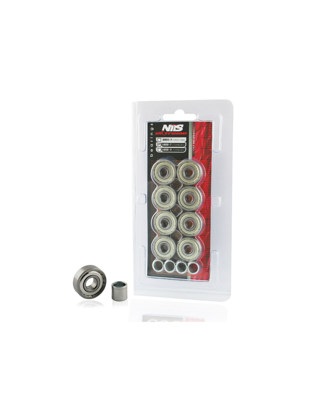 ABEC 7 Chrome е високо прецизен лагер по скалата на ABEC, изработен от най-висококачествена хромирана стомана. Той се характеризира с най-ниското съпротивление при търкаляне, което означава най-високата скорост според американските класове на толерантност на Инженерния комитет за пръстеновидни лагери (ABEC). Важен параметър на този лагер е неговият ексцентрицитет, т.е. заоблеността на повърхността във вътрешния пръстен, която е само 0,0025 mm. Специално разработено метално-гумено уплътнение предпазва лагера от нежелано замърсяване. Лагерът може да се използва за ролери, скейтбордове и скутери.