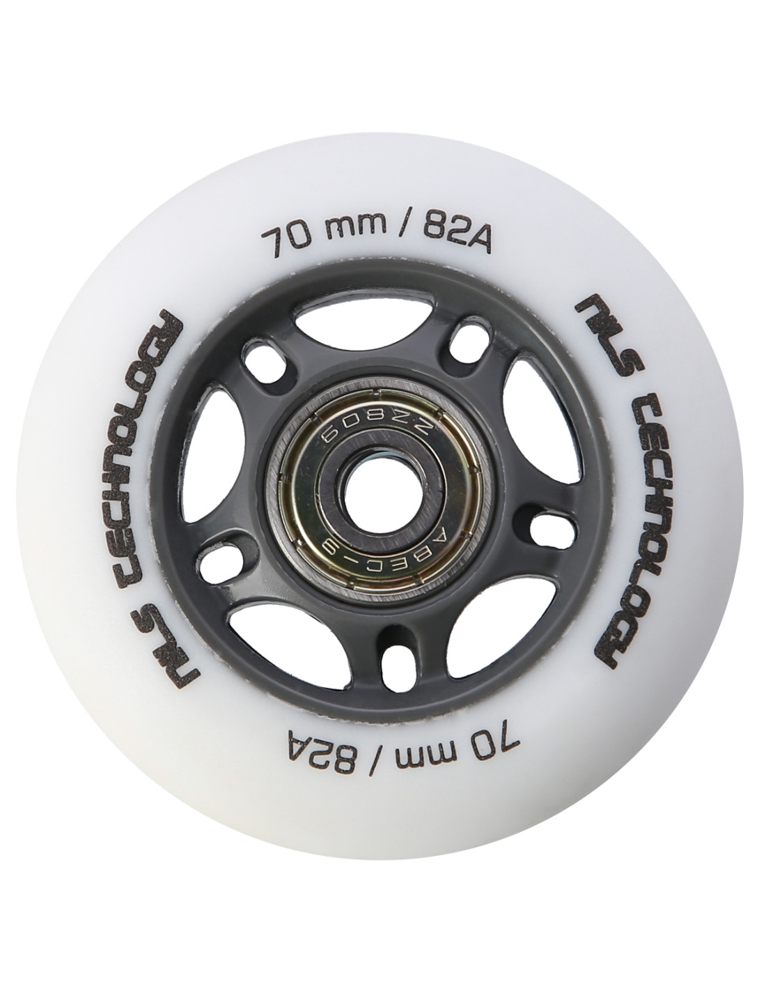 Колелата PU WHITE MATT NILS EXTREME са изработени от полиуретан. Тяхната твърдост и диаметър са два от най-важните параметри. Твърдостта на колелото влияе както на комфорта на возене, така и на сцеплението. Колелата PU-82A осигуряват добра абсорбция на удари и поглъщат неравности по всякакви повърхности. Диаметърът пряко влияе на скоростта. Колелата с по-голям диаметър ви позволяват да достигнете по-високи скорости. Те обаче не са толкова маневрени като колелата с по-малък диаметър. ABEC 9 е високо прецизен лагер, изработен от висококачествена въглеродна стомана. Това гарантира идеална твърдост и здравина на колелата. Този лагер се характеризира с най-ниското съпротивление при търкаляне, което означава най-високата скорост според американските класове на толерантност на Инженерния комитет за пръстеновидни лагери (ABEC). Важен параметър на този лагер е неговият ексцентрицитет, т.е. заоблеността на повърхността във вътрешния пръстен, която е само 0,0012 mm.