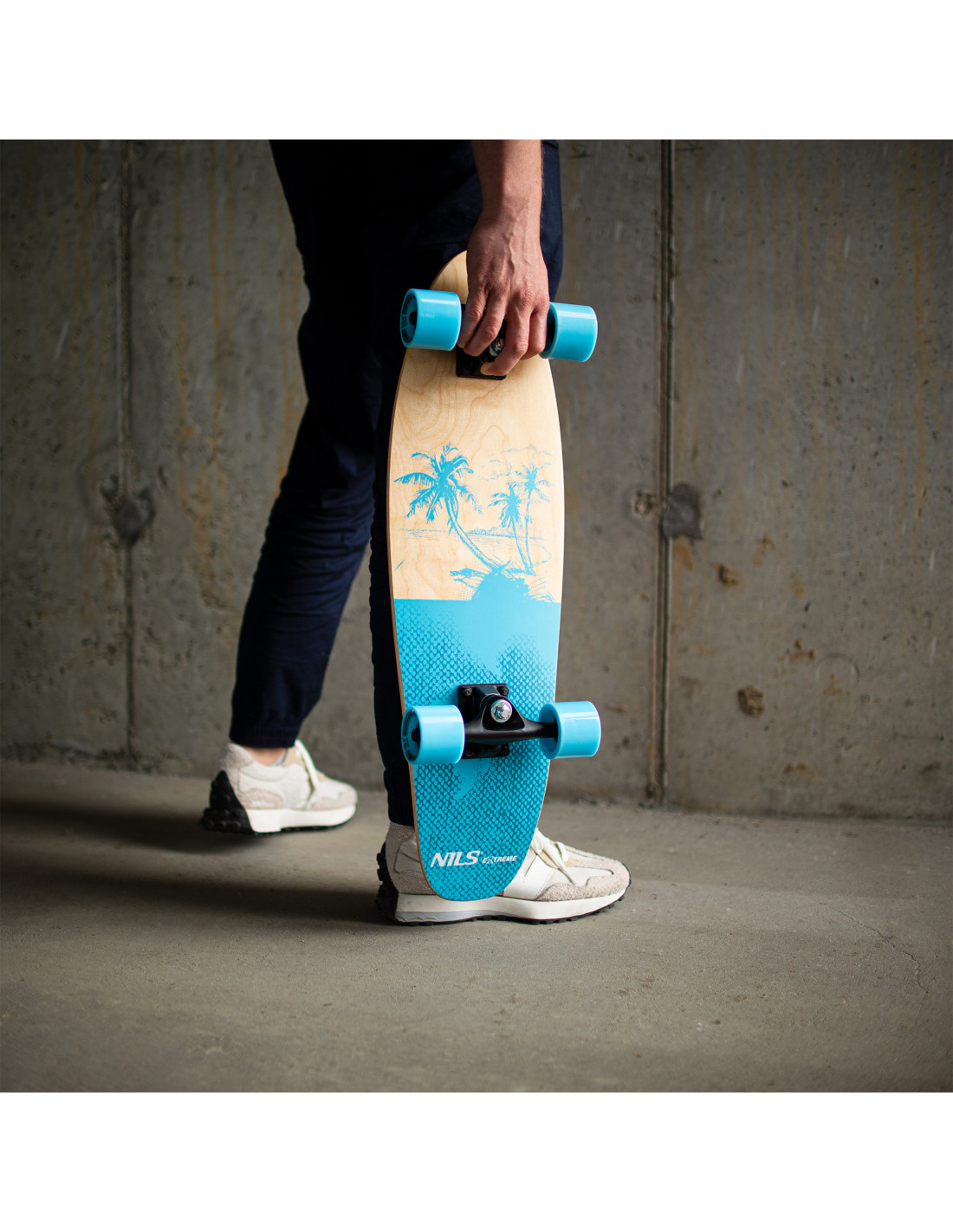 Пенибордът NILS EXTREME WOOD BAHAMAS представлява стил и мобилност в света на скейтборда. Проектиран за деца и тийнейджъри, компактните му размери го правят перфектен спътник за ежедневни пътувания и градски приключения. Палубата, изработена от седем слоя висококачествено кленово дърво, съчетава издръжливост с гъвкавост, осигурявайки плавно каране и маневри.