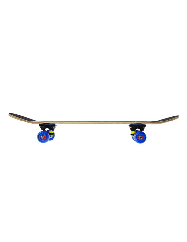 Скейтбордът CR3108SA Sk8Boy Nils Extreme се отличава с интересен дизайн. Той разполага със синя и черна графика в стил скейт. Скейтбордът е специално подсилен, оформен и полиран. Изработена е от 9-слоен ламиниран шперплат. Този материал осигурява висока издръжливост и еластичност. Горната част е покрита с шкурка (известна също като захващане), осигуряваща сигурна основа. Скейтбордът CR3108SB Sk8Boy разполага с 52 x 36 mm лети PU колела, които ви позволяват да достигате високи скорости. Лагерите ABEC 3 също осигуряват отлични характеристики на управление.