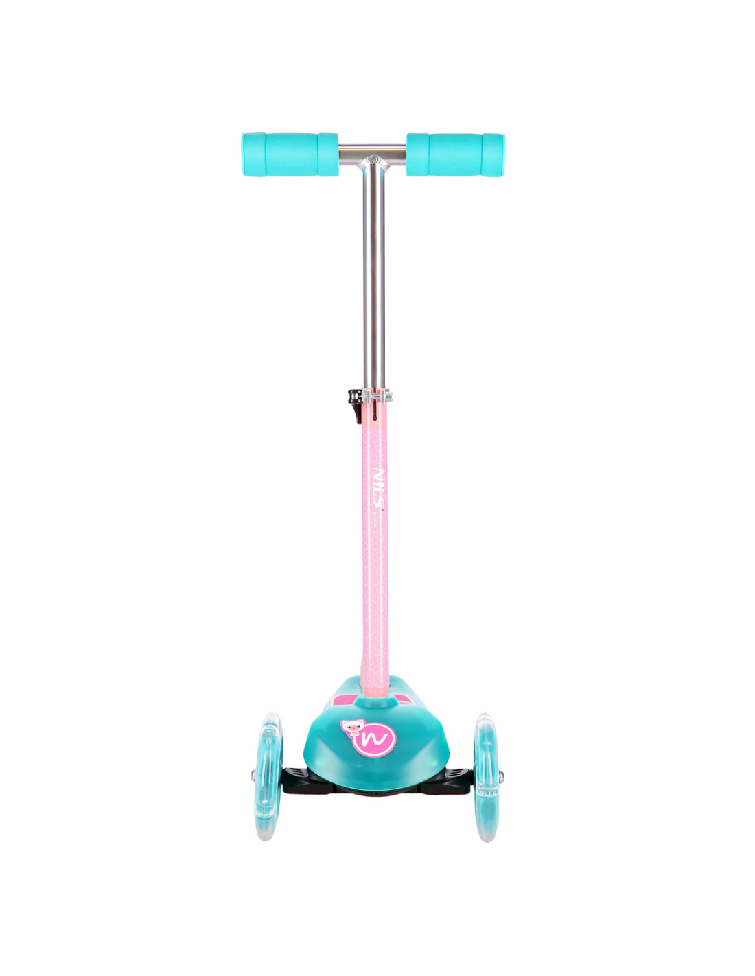 HLB001 от марката NILS FUN е триколесен скутер, идеален за най-малките скейтъри. Трите колела улесняват научаването и практикуването на каране. HLB001 разполага с интуитивна система за управление. Кормилото се използва предимно за баланс, а управлението се постига чрез балансиране и накланяне на колелото на една или друга страна. Това решение работи много добре за най-малките скейтъри. Благодарение на регулируемото кормило можете лесно да настроите продукта според височината на вашето дете, което ви позволява да използвате вашия скутер през всички сезони. Отличителна черта на модела HLB0001 е светещият борд и светещи колела. Това не само създава страхотен визуален ефект, но и осигурява много забавление за децата. Най-важното е, че тези функции правят мотоциклетиста по-видим, което значително повишава безопасността на пътя. Детската тротинетка е оборудвана с крачна спирачка за повишена безопасност при каране, а лагерите ABEC5 осигуряват високо ниво на комфорт при каране.