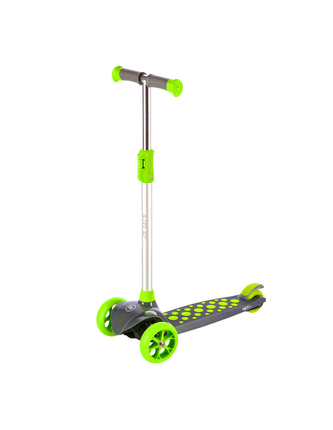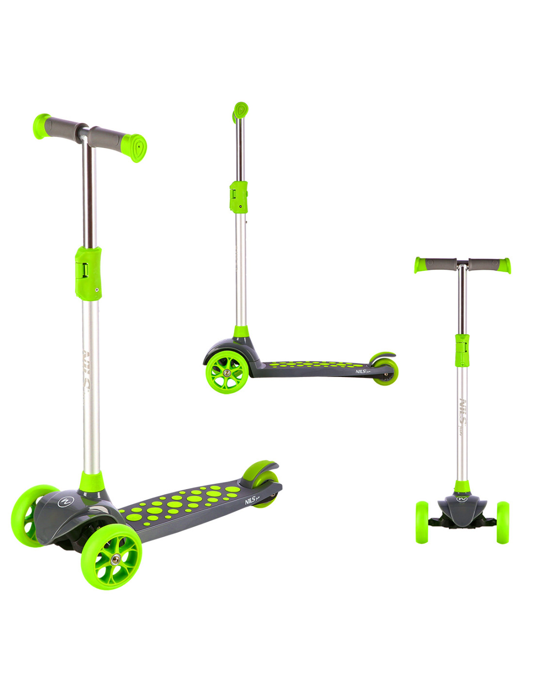 HLB02 от марката NILS е триколесен скутер, който е идеален за най-малките скейтъри. Трите колела улесняват научаването и практикуването на каране. HLB02 разполага с интуитивна система за управление. Кормилото се използва предимно за баланс, а управлението се постига чрез балансиране и накланяне на колелото на една или друга страна. Това решение работи добре за най-малките скейтъри. Благодарение на регулируемото кормило можете лесно да настроите продукта според височината на вашето дете, което ви позволява да използвате вашия скутер през всички сезони. Детската тротинетка е оборудвана с крачна спирачка за повишена безопасност при каране, а лагерите ABEC7 осигуряват високо ниво на комфорт. Друго предимство на HLB02 са неговите осветени LED колела. Те не само осигуряват много забавление за децата, но и повишават безопасността, като правят ездача по-видим.