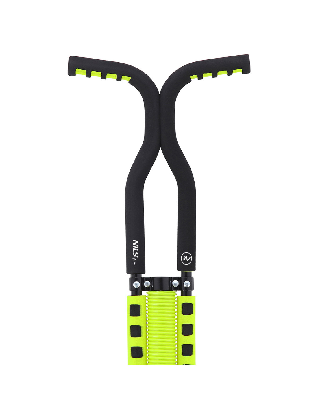 NFX5006 е изработен от най-висококачествени материали. Здравата му стоманена рамка осигурява товароносимост от 70 кг. Дръжките са покрити с пяна, което предотвратява хлъзгането на ръцете ви и гарантира удобно захващане. Поставките за крака са изработени от специално проектирана пластмаса, която държи краката ви здраво на място. Основата на стика за скачане е кръгла и покрита с гума, което ви позволява да скачате свободно във всяка посока.