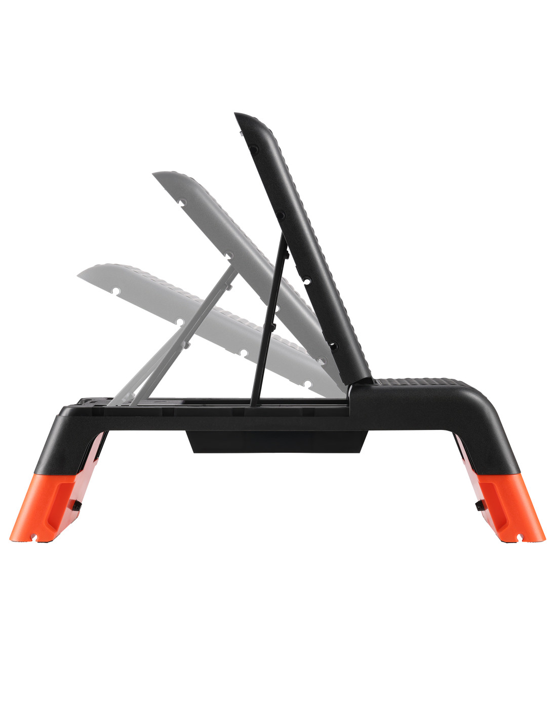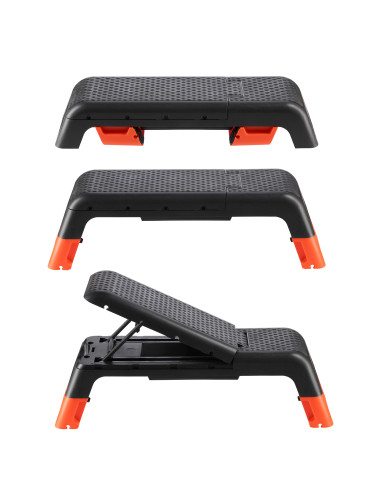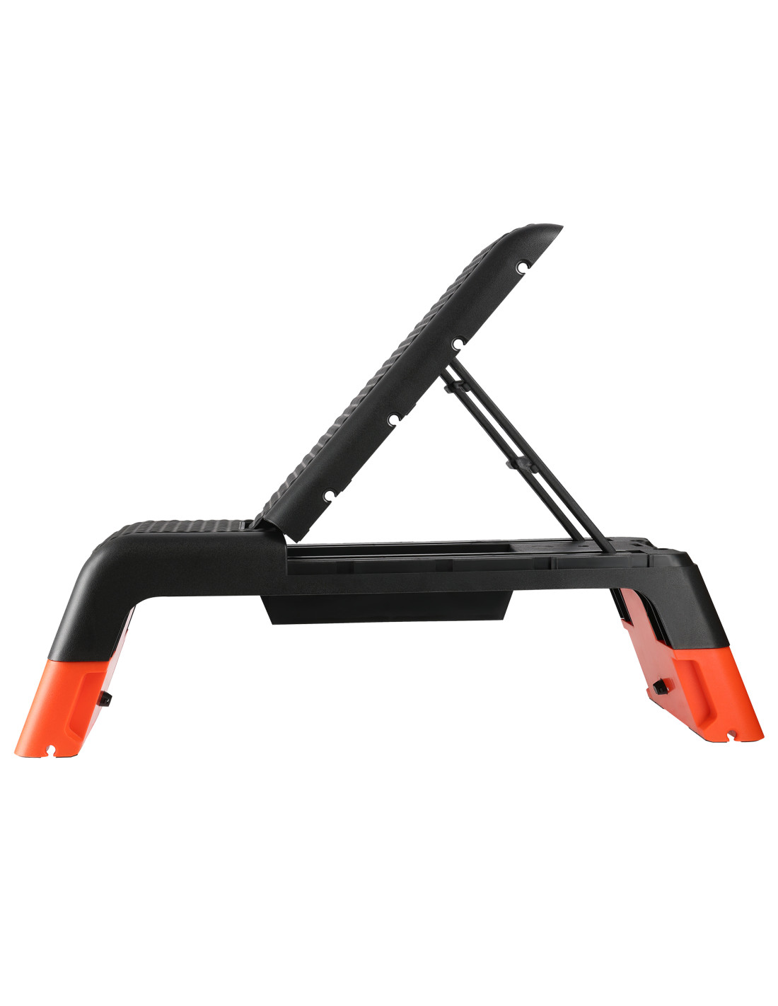 Само за няколко секунди можете да трансформирате стъпалото в пълноценна тренировъчна лежанка! Облегалката може да се регулира в три различни ъгъла, което ви позволява да изпълнявате различни силови упражнения, като например тези с дъмбели или съпротивителни ленти. Това решение съчетава фитнес със силови тренировки, което ви позволява да използвате напълно потенциала на тялото си.