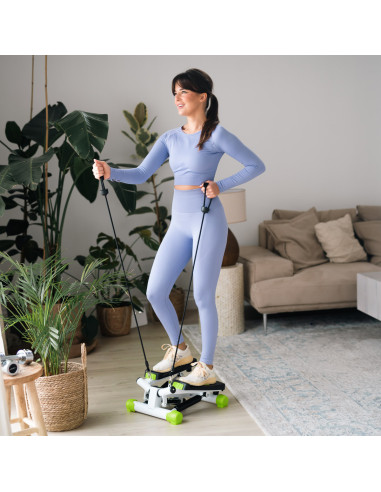 За да увеличите вашето удовлетворение, S3033 HMS Side Stepper е оборудван с разширители. Помагат за тонизиране на горните мускулни групи. За по-добри резултати от тренировките не ги пренебрегвайте! Експандерите ви позволяват да добавяте нови упражнения към вашите тренировки и да подобрявате резултатите от тренировките. В същото време времето, необходимо за изгаряне на калории, е по-кратко, отколкото си мислите.