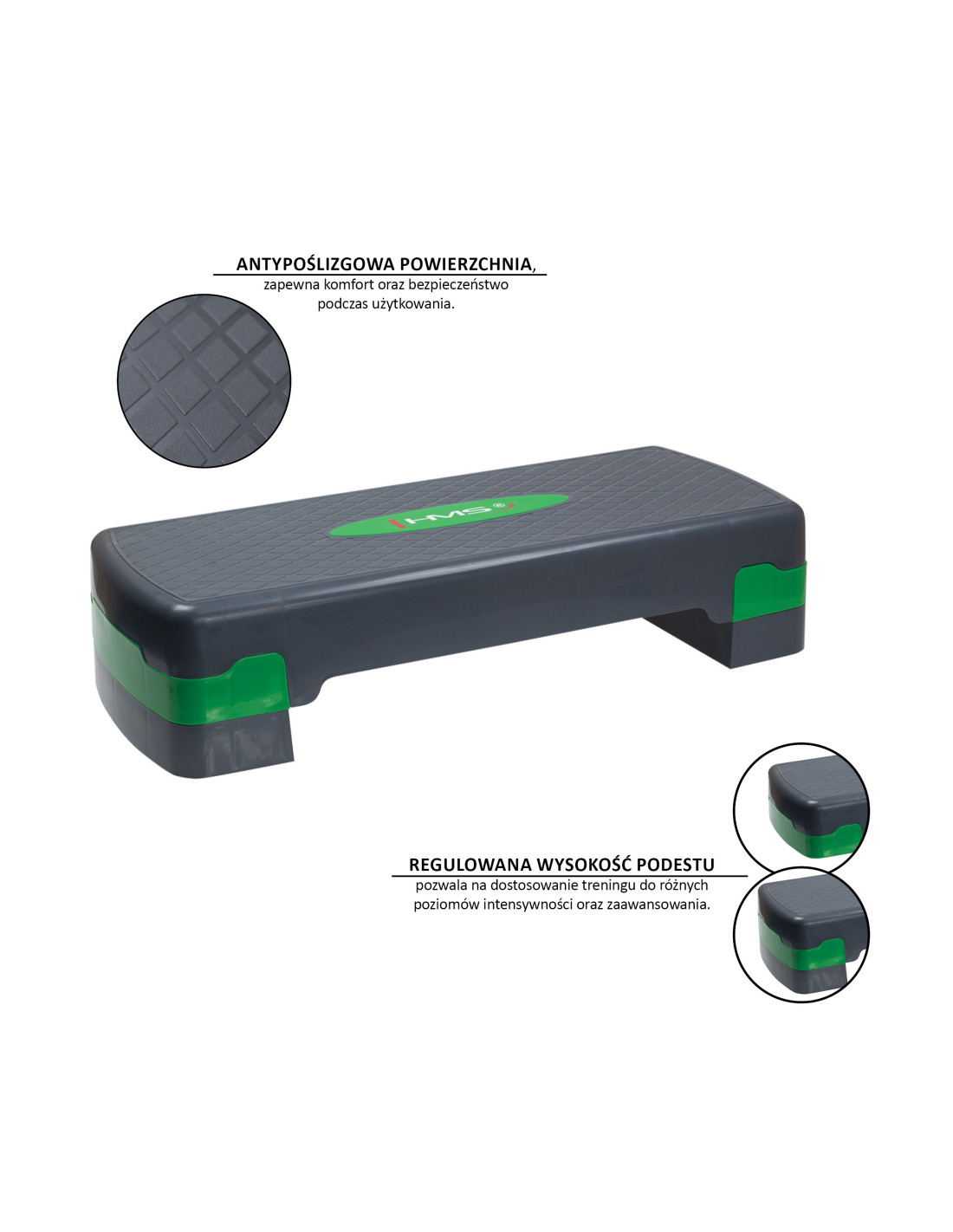 Двустепенното регулиране на височината означава, че можете идеално да адаптирате дъската за стъпала AS003 HMS към вашите очаквания, способности или вида на конкретното упражнение.