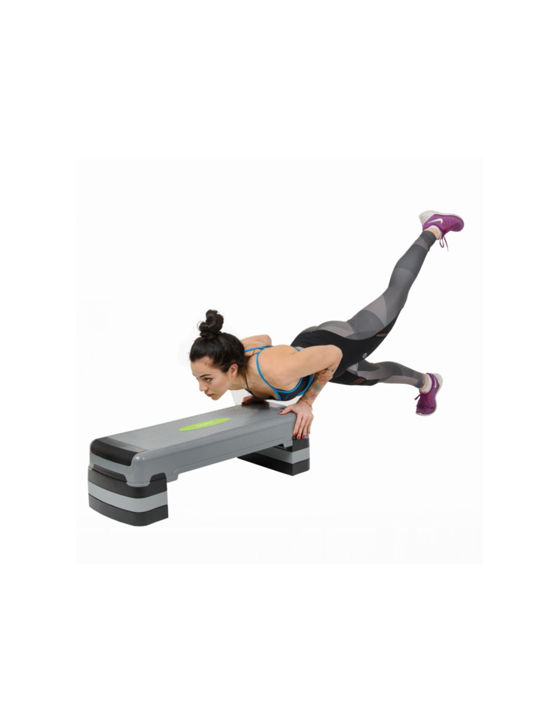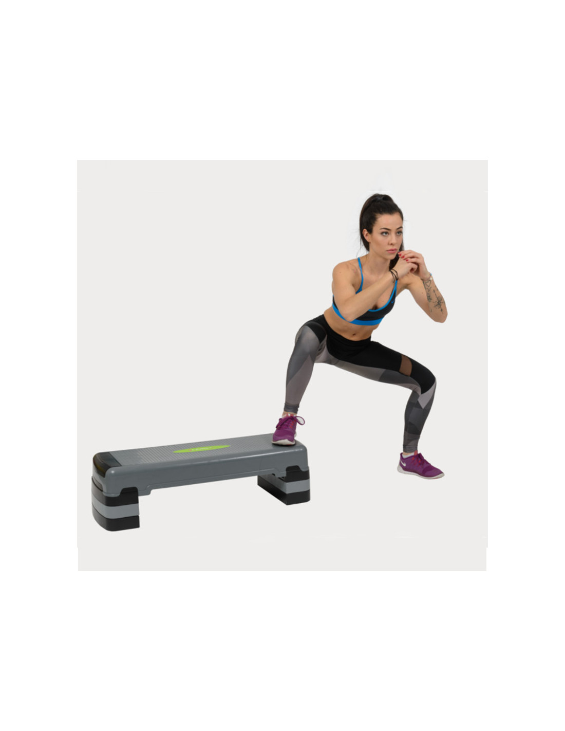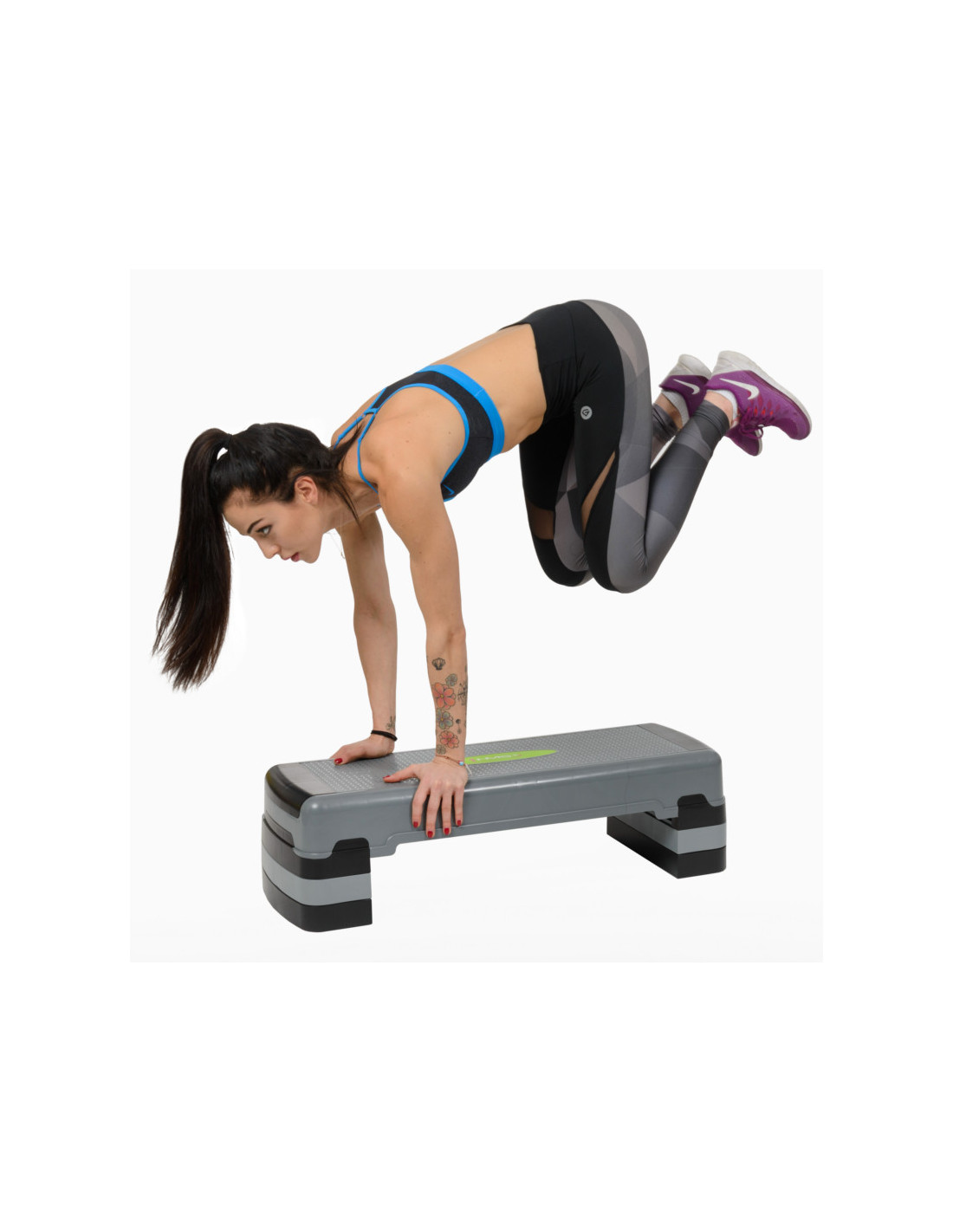 3-степенното регулиране на височината ви позволява идеално да адаптирате стъпалата AS005 HMS към вашите нужди, способности или вида на упражнението, което изпълнявате. Неплъзгащата се повърхност на дъската за стъпала осигурява стабилност и безопасност по време на тренировка. Гумените капачки за крачета предотвратяват нежелано движение.