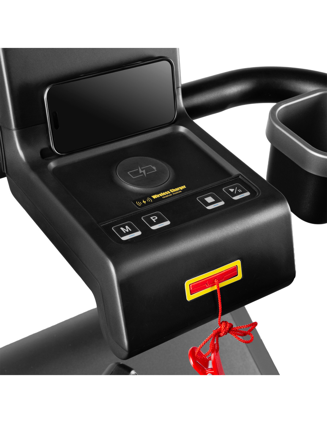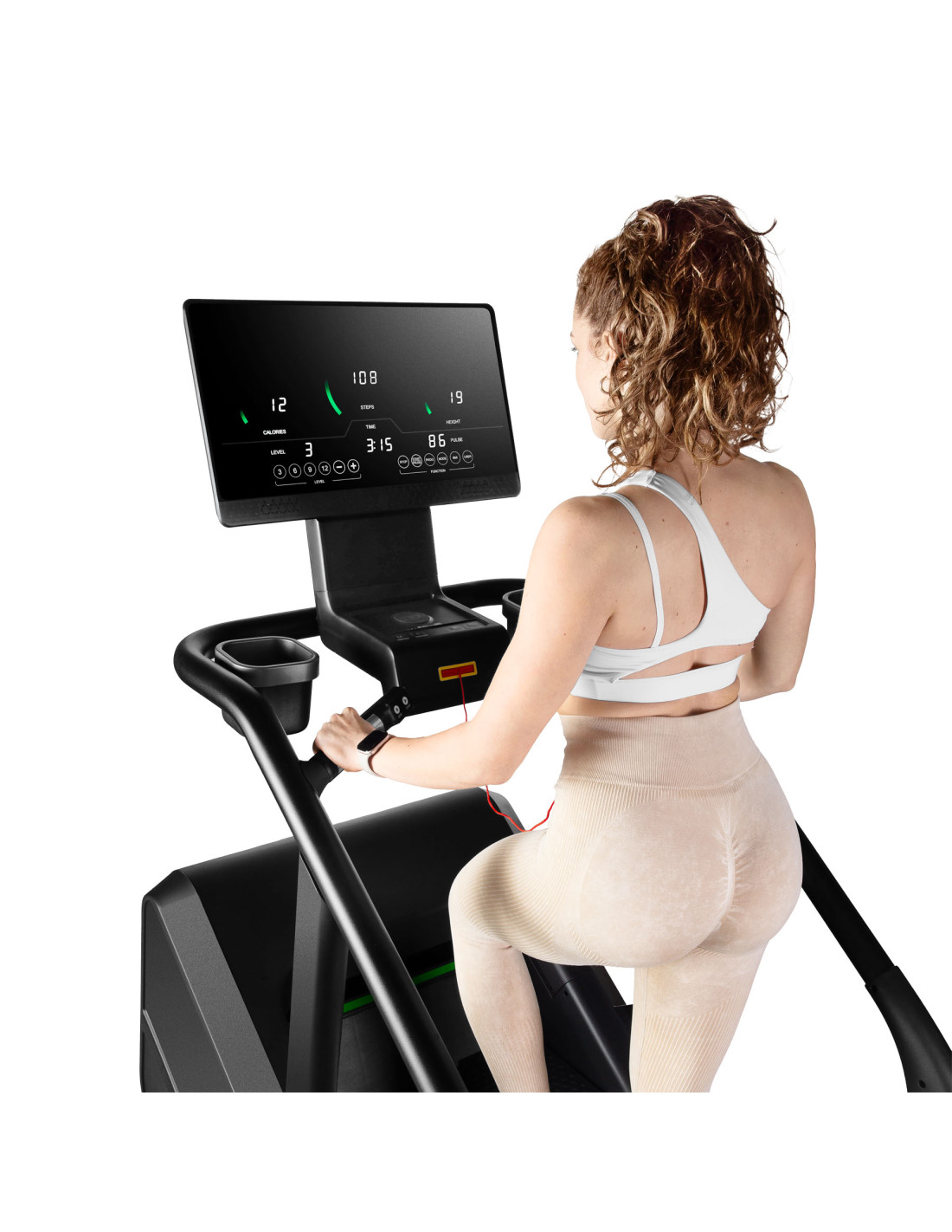 Der ST02-Treppensteiger misst Geschwindigkeit, Anzahl der Stufen, Höhe, Zeit, Kalorienverbrauch, Puls und Körperfett, sodass Sie Ihre Fortschritte überwachen und Ihr Training an Ihre individuellen Ziele anpassen können. Mit einem kabellosen Ladegerät können Sie Ihre mobilen Geräte während des Trainings bequem aufladen. Das intuitive Bedienfeld mit Geschwindigkeitsregler und einer Start-/Stopptaste am Lenker sorgt für eine einfache und schnelle Bedienung.