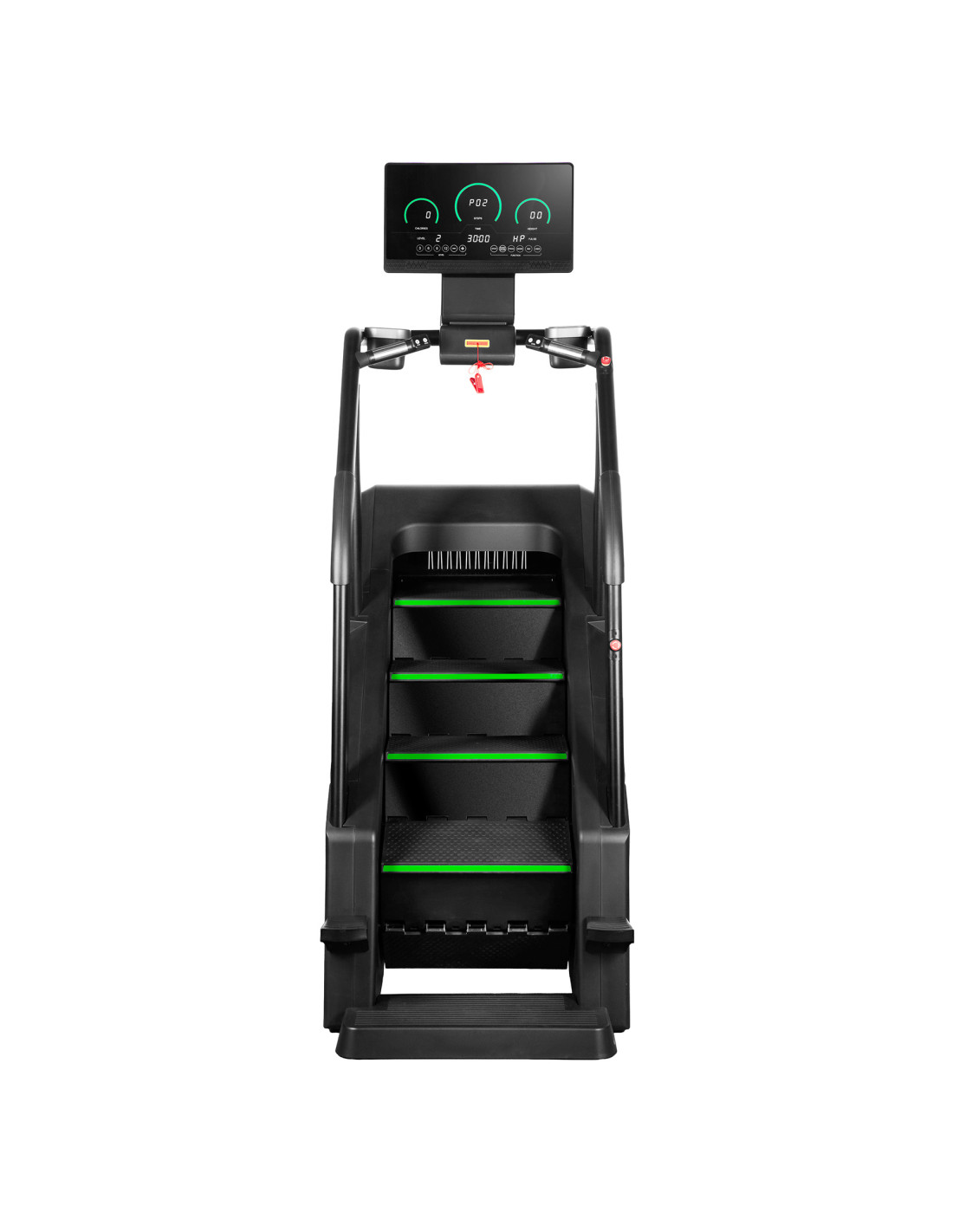 Das Gerät zeichnet sich durch eine robuste Konstruktion aus, die Stabilität bei intensiven Trainingseinheiten garantiert. Rutschfeste Stufen und eine Steigung von 35 Grad sorgen für Komfort und Sicherheit. Ein selbstsicherndes System und ein automatischer Stopp bei fehlender Last oder einer Last unter 30 kg erhöhen die Sicherheit zusätzlich.