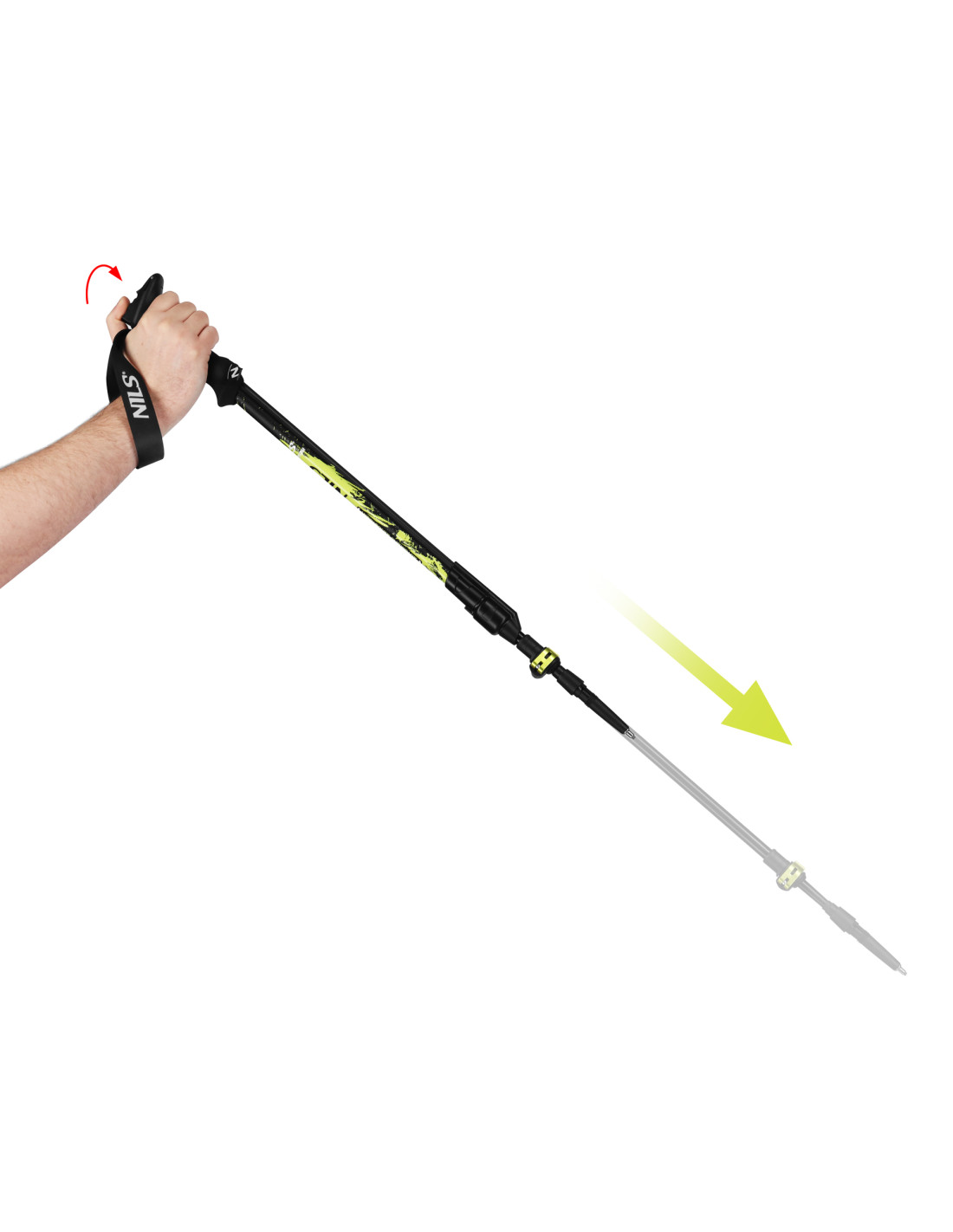 - • Klemmsystem: Stabile Verschlüsse sorgen für Stabilität der Stöcke