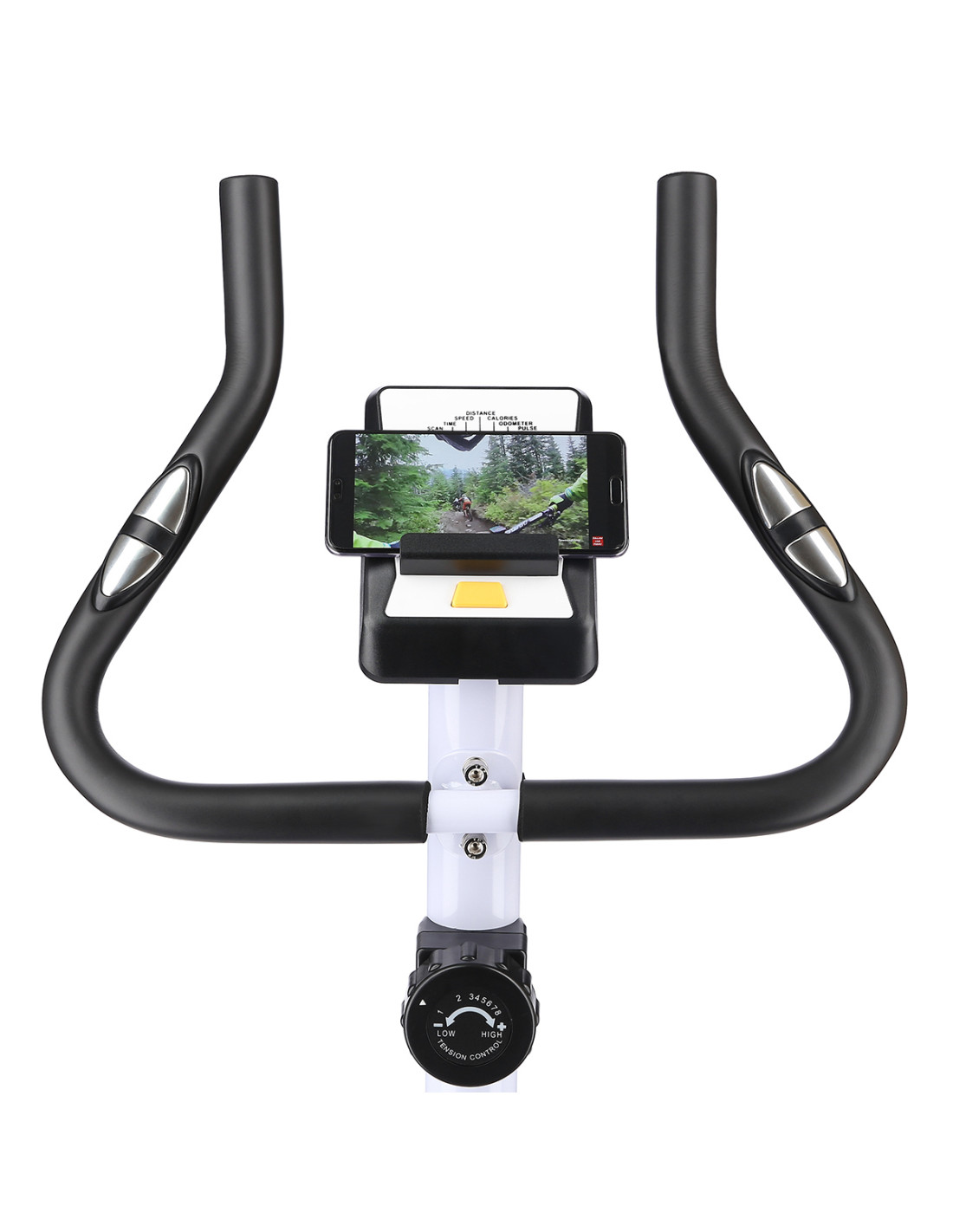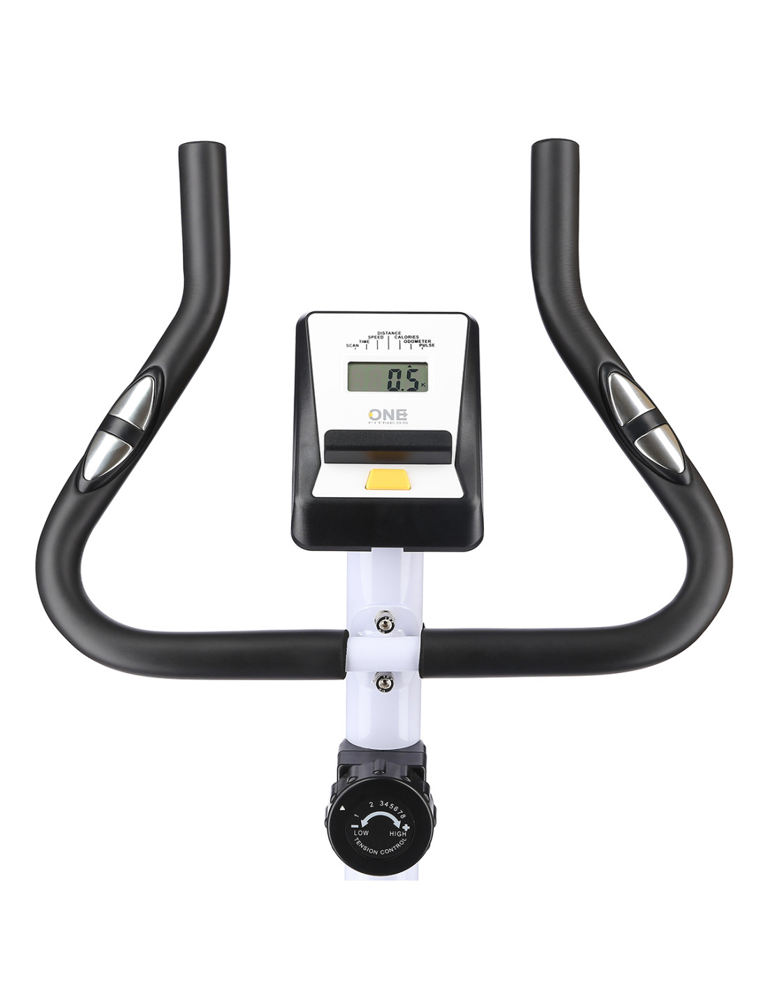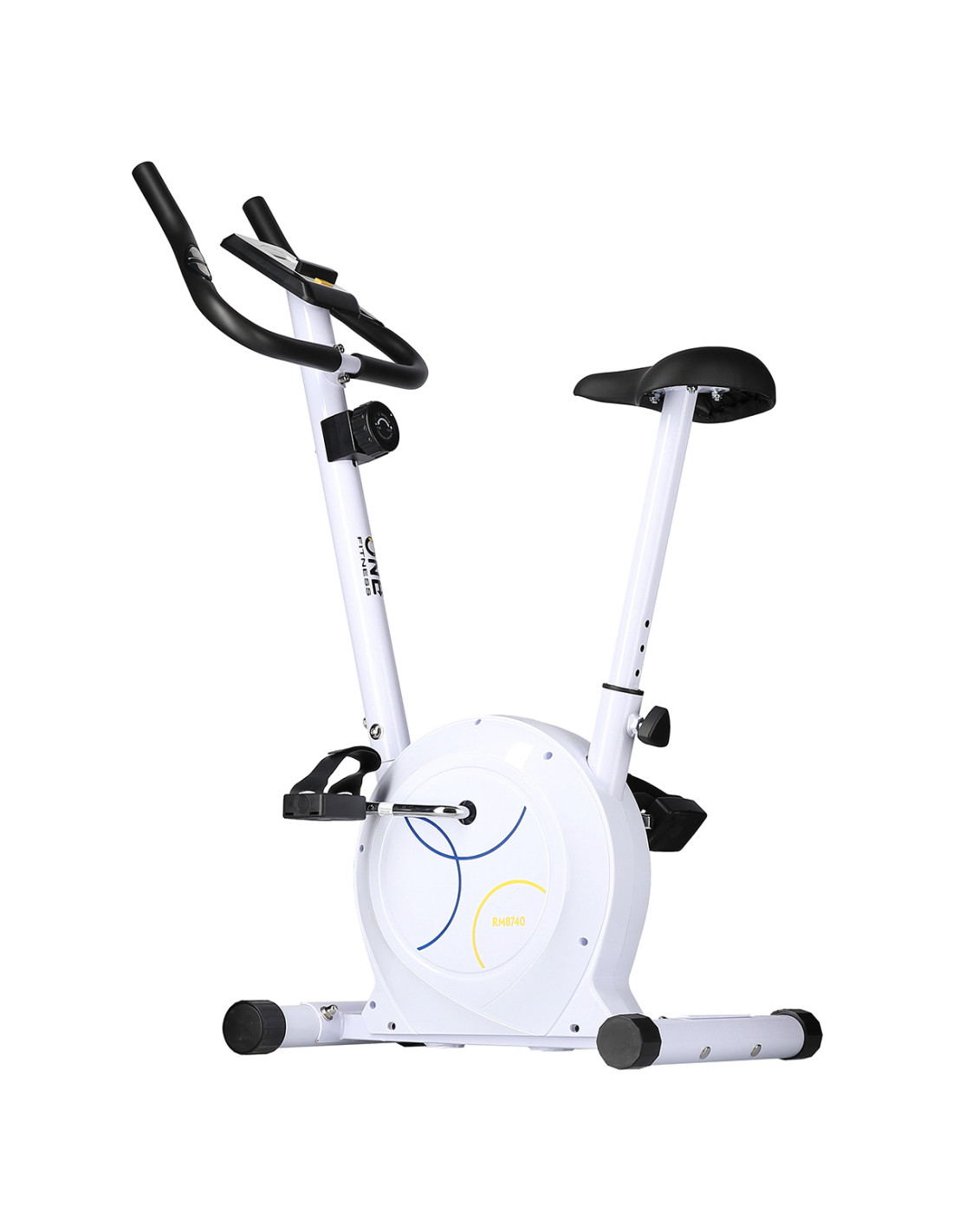 Магнитният велоергометър ONE FITNESS RM8740 е популярно фитнес оборудване, идеално за домашни тренировки. Системата за магнитно съпротивление прави упражненията тихи, така че няма да безпокоите другите около вас. 8-степенното регулиране на съпротивлението позволява този велоергометър да бъде съобразен с физическите способности на всеки потребител. Регулирането е много лесно с помощта на циферблата, разположен върху опората на кормилото. Функционалният и модерен екран отчита и показва всички най-важни параметри на тренировката, включително скорост, време и изгорени калории. Регулируемата седалка и удобните педали с регулируеми презрамки са допълнителни предимства на изтънчения дизайн. Този модел разполага и с държач за мобилно устройство, което прави тренировката ви по-приятна, като например гледане на филм на таблета по време на тренировка.