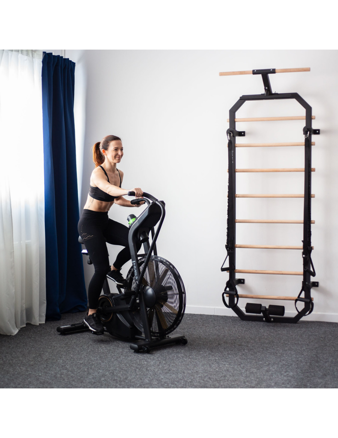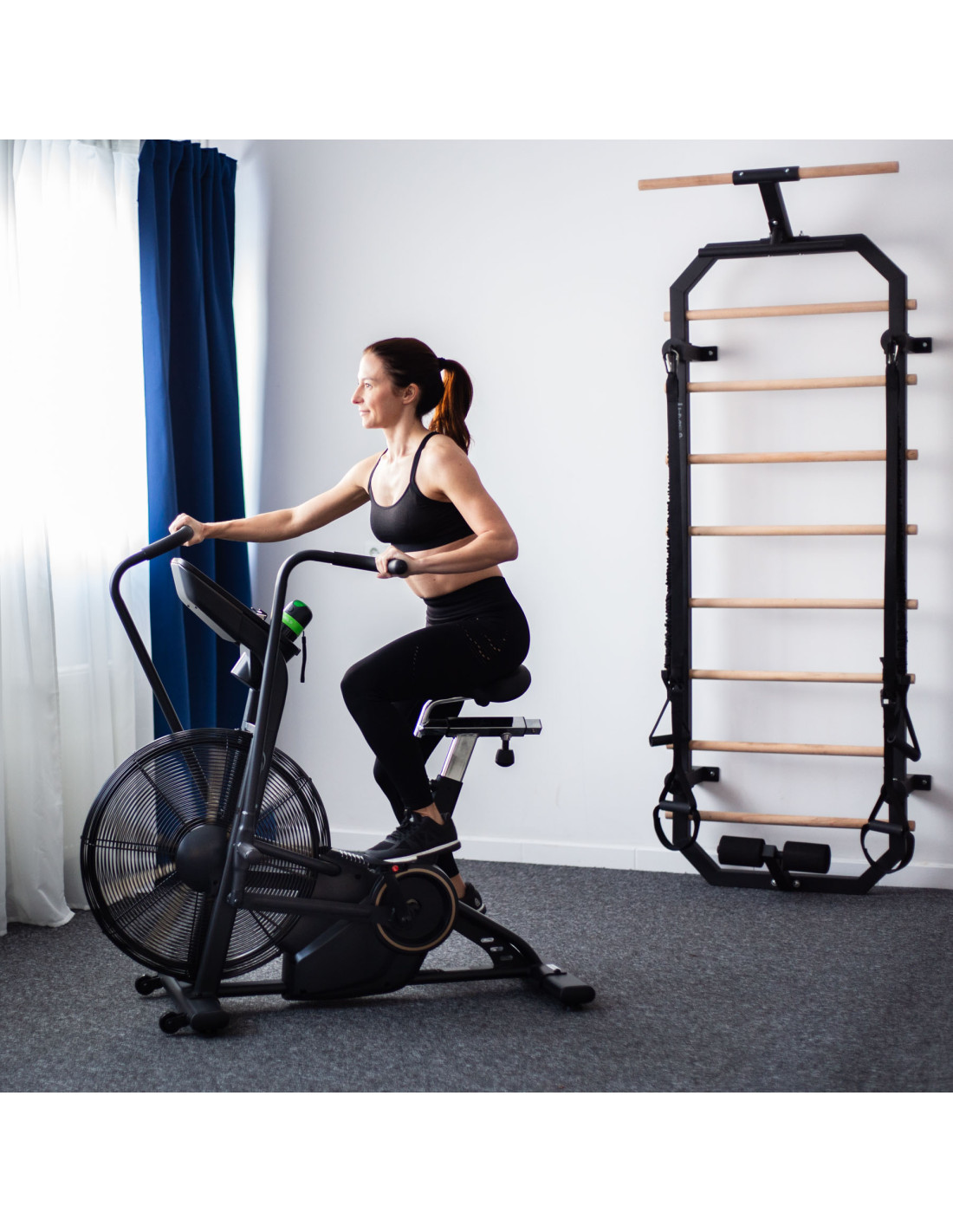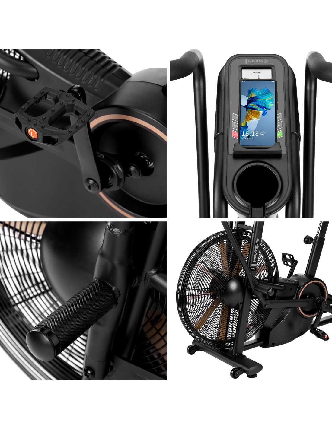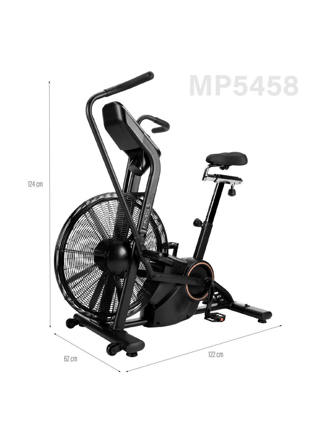 Der Luftheimtrainer MP5458 zeichnet sich dadurch aus, dass es über bewegliche Armstangen verfügt, die die Arme zum Arbeiten zwingen, so dass auch die oberen Muskeln beansprucht werden. Dieses Produkt bietet somit ein Ganzkörpertraining, das sowohl Beine, Arme, Brust, Rücken und Bauch stärkt. MP5458 hat einen Luftwiderstand, d. h. je schneller man in die Pedale tritt, desto größer ist die Belastung. Dadurch passt sich der Luftheimtrainer an unser Tempo und unser Fitnessniveau an.