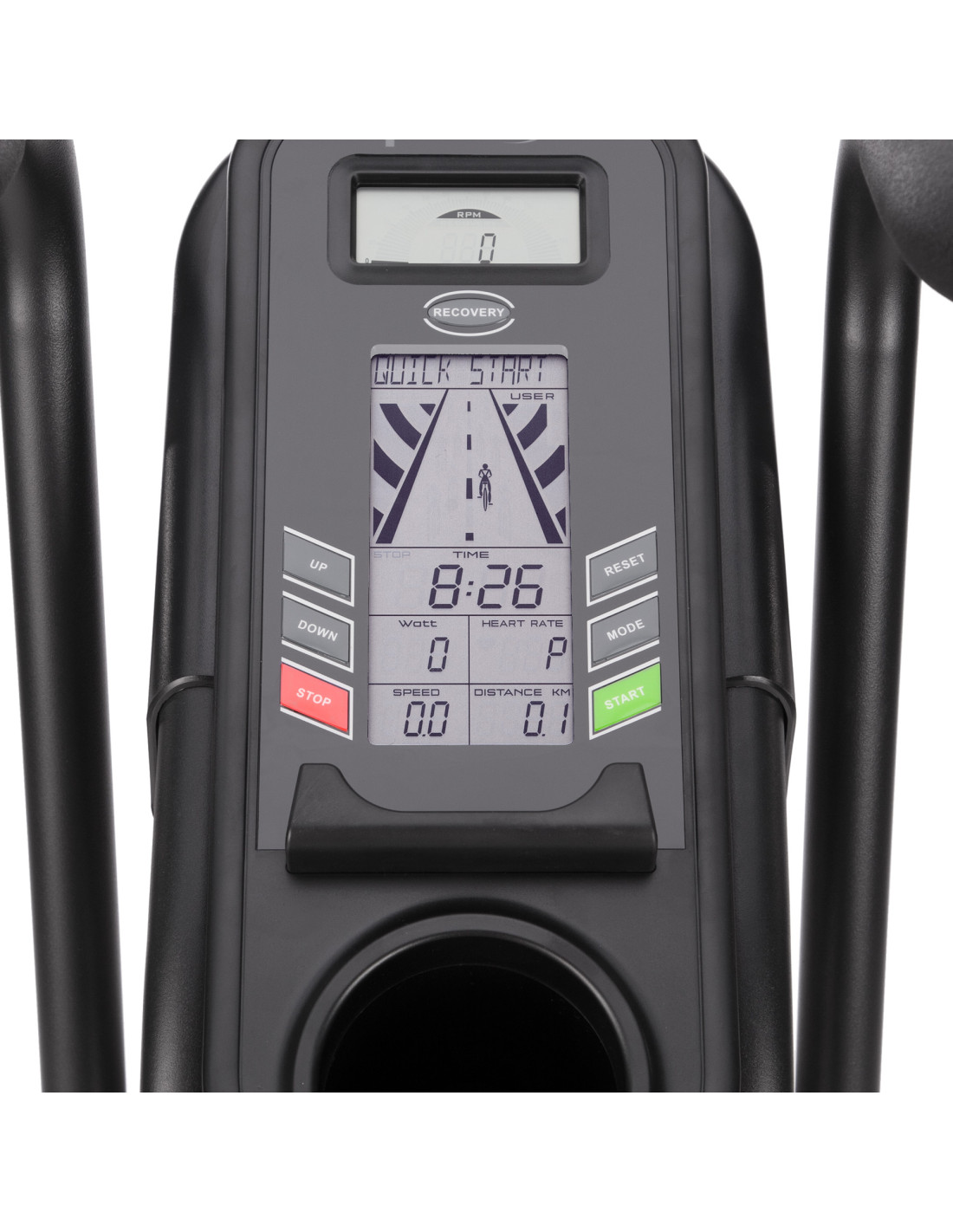 Der Luftheimtrainer MP5458 verfügt über ein LCD-Display, auf dem Sie alle wichtigen Trainingsparameter wie Zeit, Distanz, Geschwindigkeit, Puls, Kalorienverbrauch und Umdrehungen pro Minute ablesen können. So können Sie Ihre Fortschritte überwachen und die Intensität Ihres Trainings an Ihre Ziele und Fähigkeiten anpassen. Das Display ist klar und einfach zu bedienen und verfügt über eine Hintergrundbeleuchtung, sodass Sie auch bei schlechten Lichtverhältnissen trainieren können.