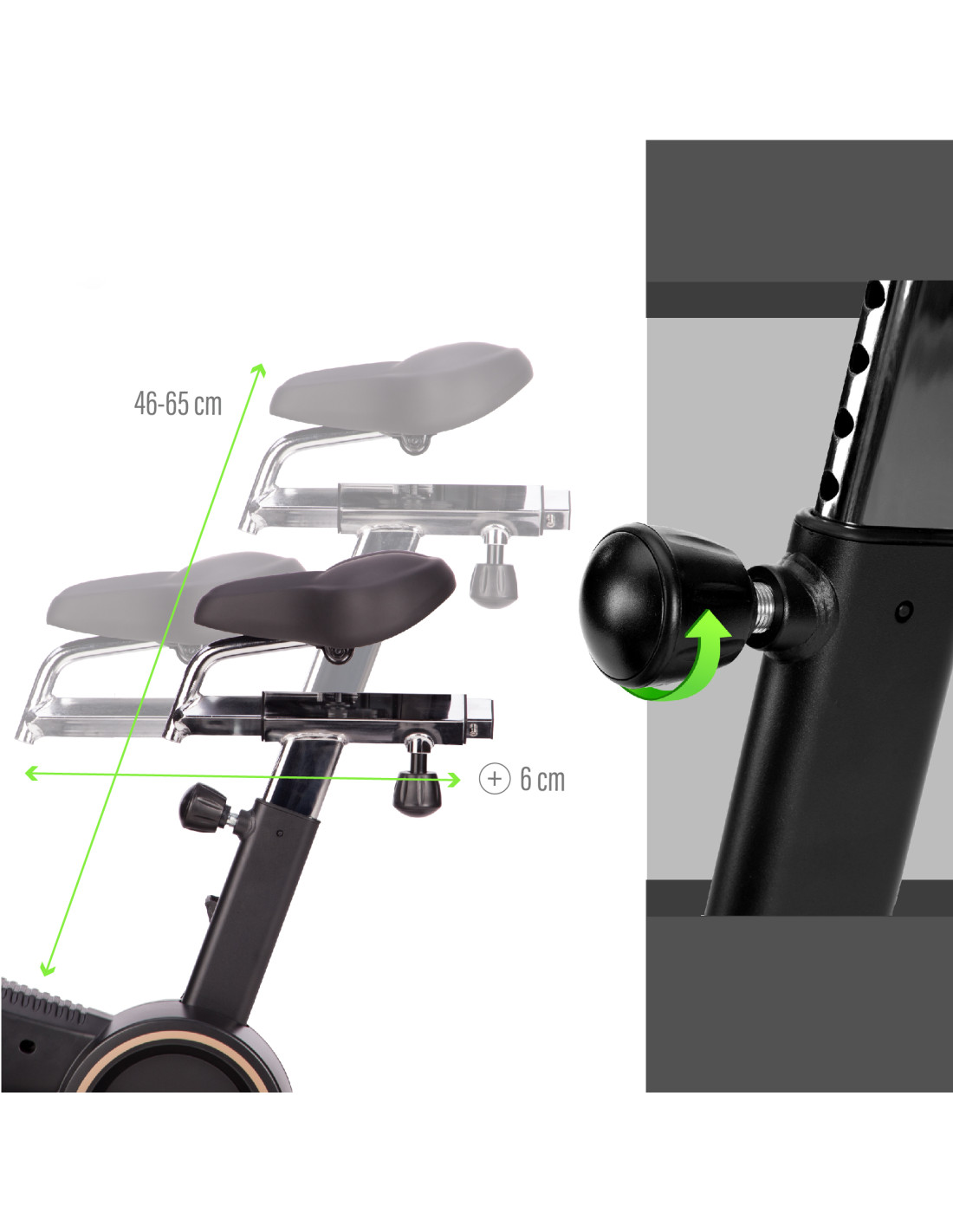 Mit MP5458 können Sie den Sattel an Ihre Körpergröße und Ihre Vorlieben anpassen. Sie können den Sattel manuell vertikal und horizontal verstellen, so dass Sie Ihre optimale Position für Ihr Training finden können. Der Sattel ist bequem und ergonomisch. Er ist mit Kunstleder überzogen, was ihn langlebig und leicht zu reinigen macht.