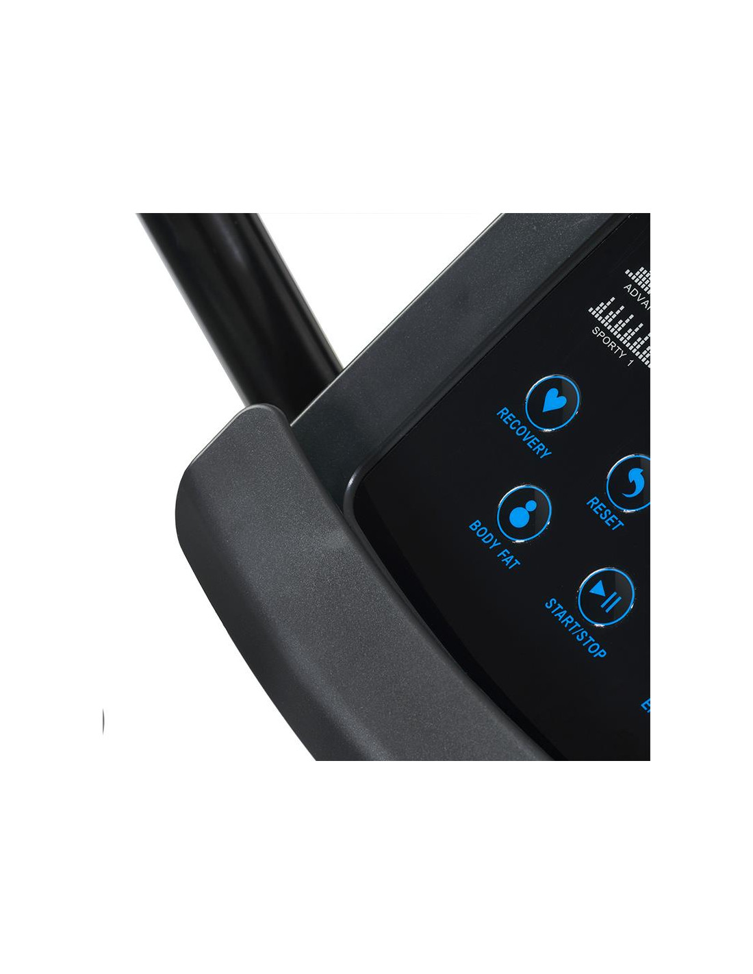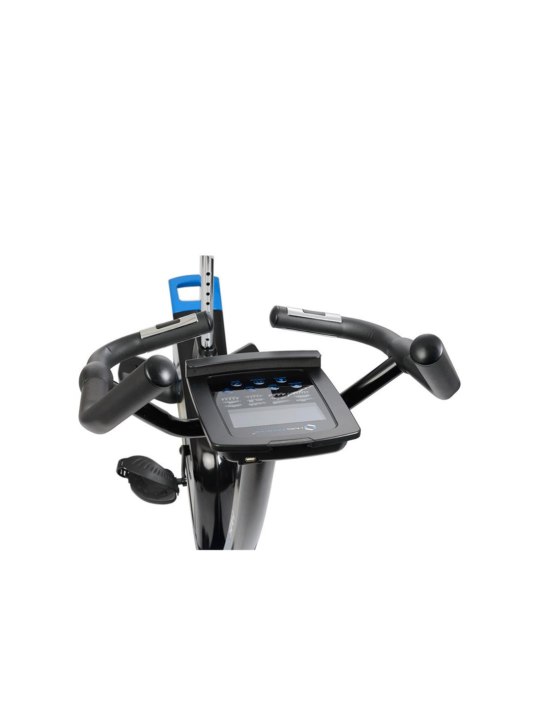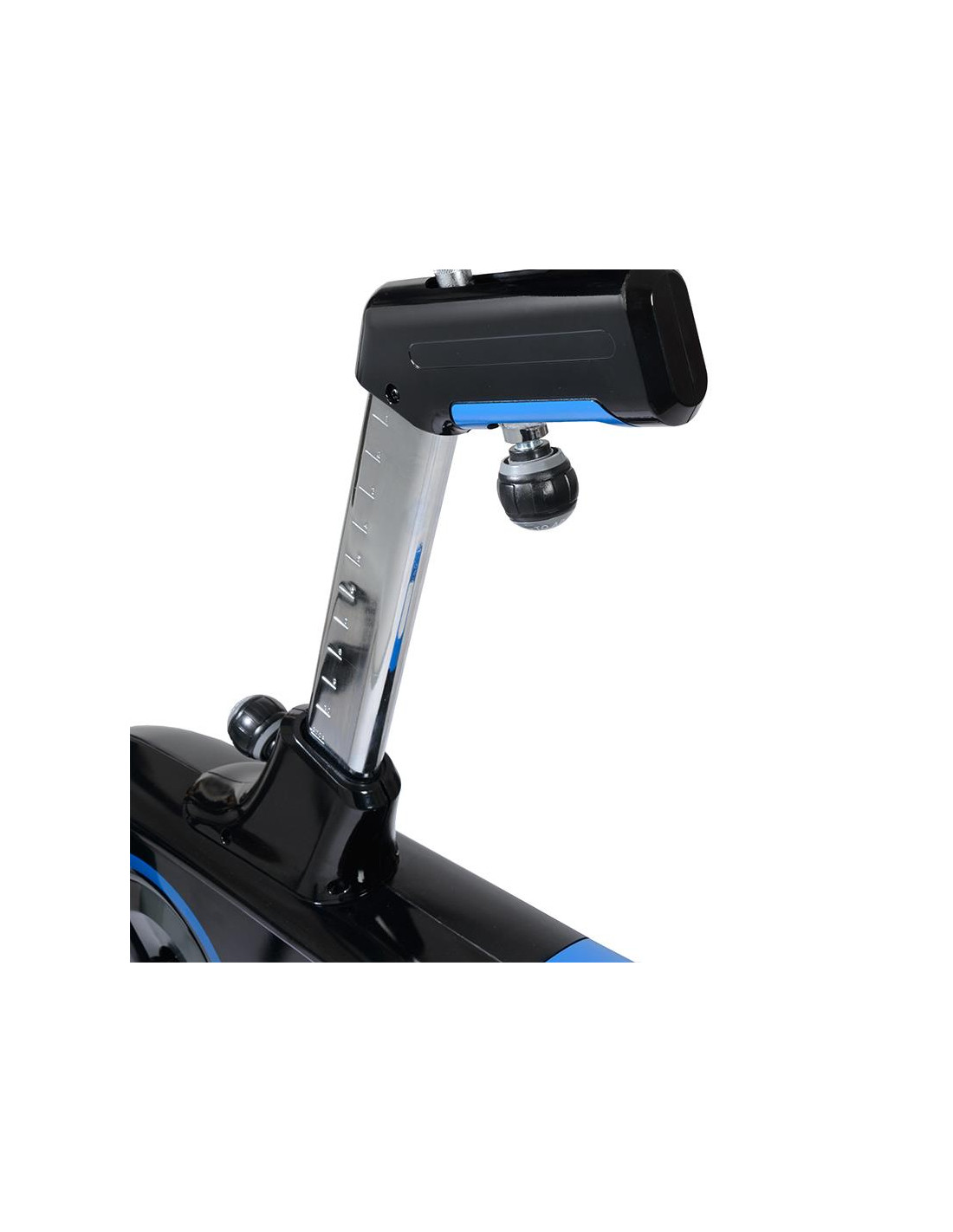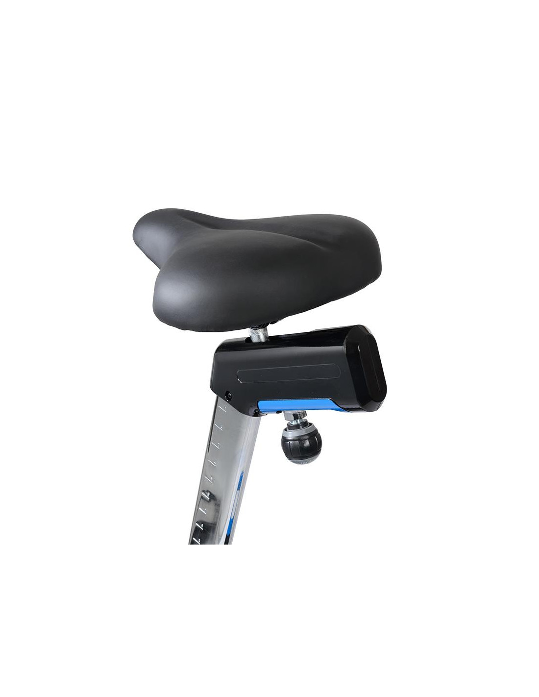 Einem Nutzer stehen 10 Hauptfunktionen zur Verfügung: Time (Trainigszeit), Distance (die zurückgelegte Strecke), Calories (verbrannte Kalorien), Pulse (Puls), Watt (Leistung), Speed (Geschwinidgkeit), RPM (Umdrehungen pro Minute), Manual (Modus des manuellen Trainings), Cardio (Übungen, die den Herzrhythmus beschleunigen) und Programm (12 Grundprogramme). Das sind: 4 Anfängerstufen, 4 Fortgeschrittenenstufen, 4 Sportstufen. Das Gerät verfügt über die rutschfesten Pedale sowie die vertikale und horizontale Satteleinstellung. Die Trittstufen haben spezielle Riemen. Mit dem Ziel, maximale Sicherheit zu gewährleisten, sind alle Griffe mit einem speziellen rutschfesten Stoff bedeckt. Der Heimtrainer ist auch mit Bluetooth-Technologie, Handpuls-Sensoren zur präzisen Pulsmessung und einem USB-Anschluss ausgestattet.