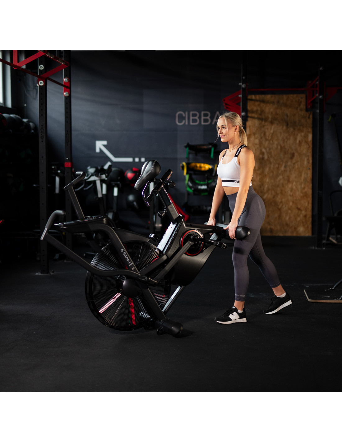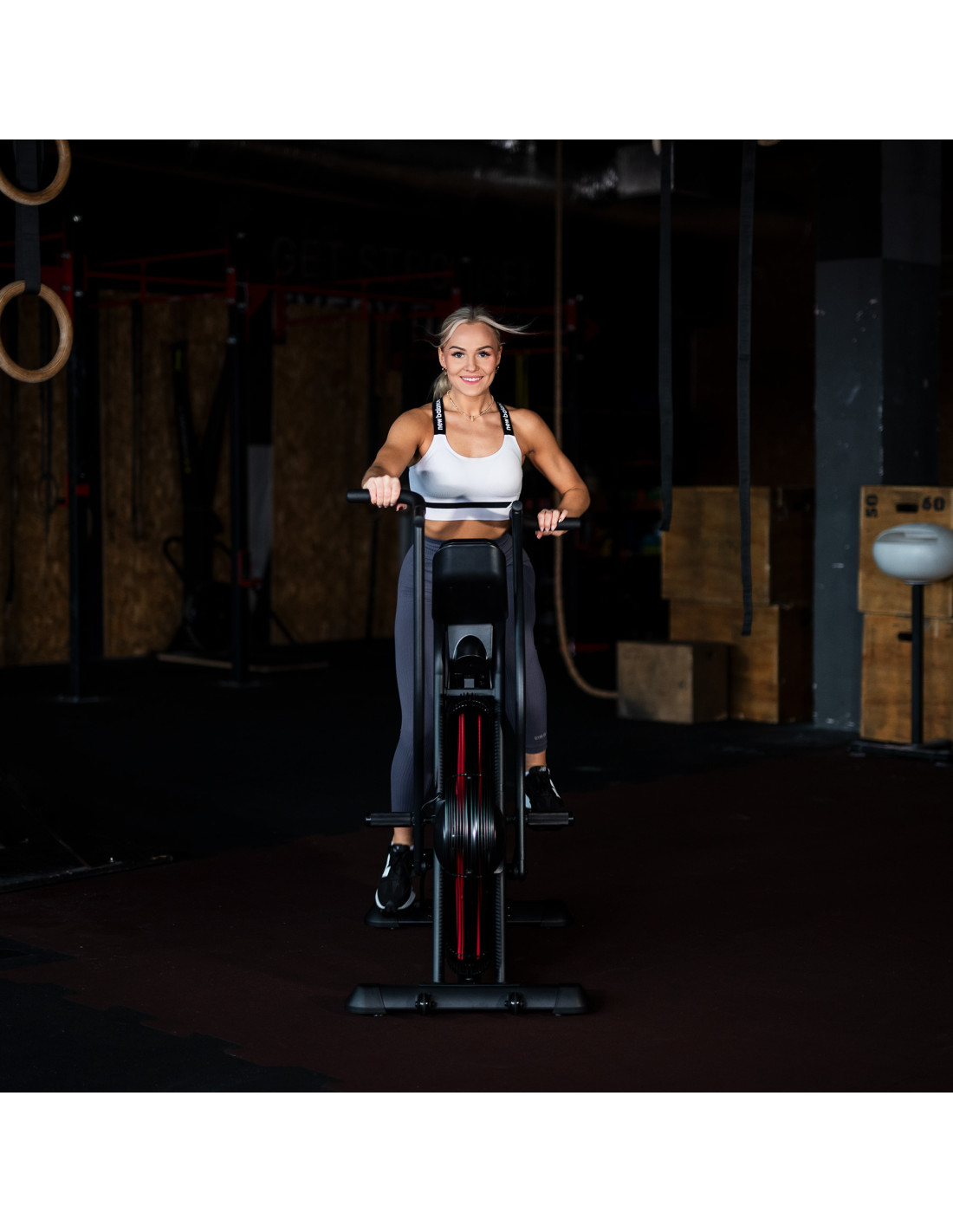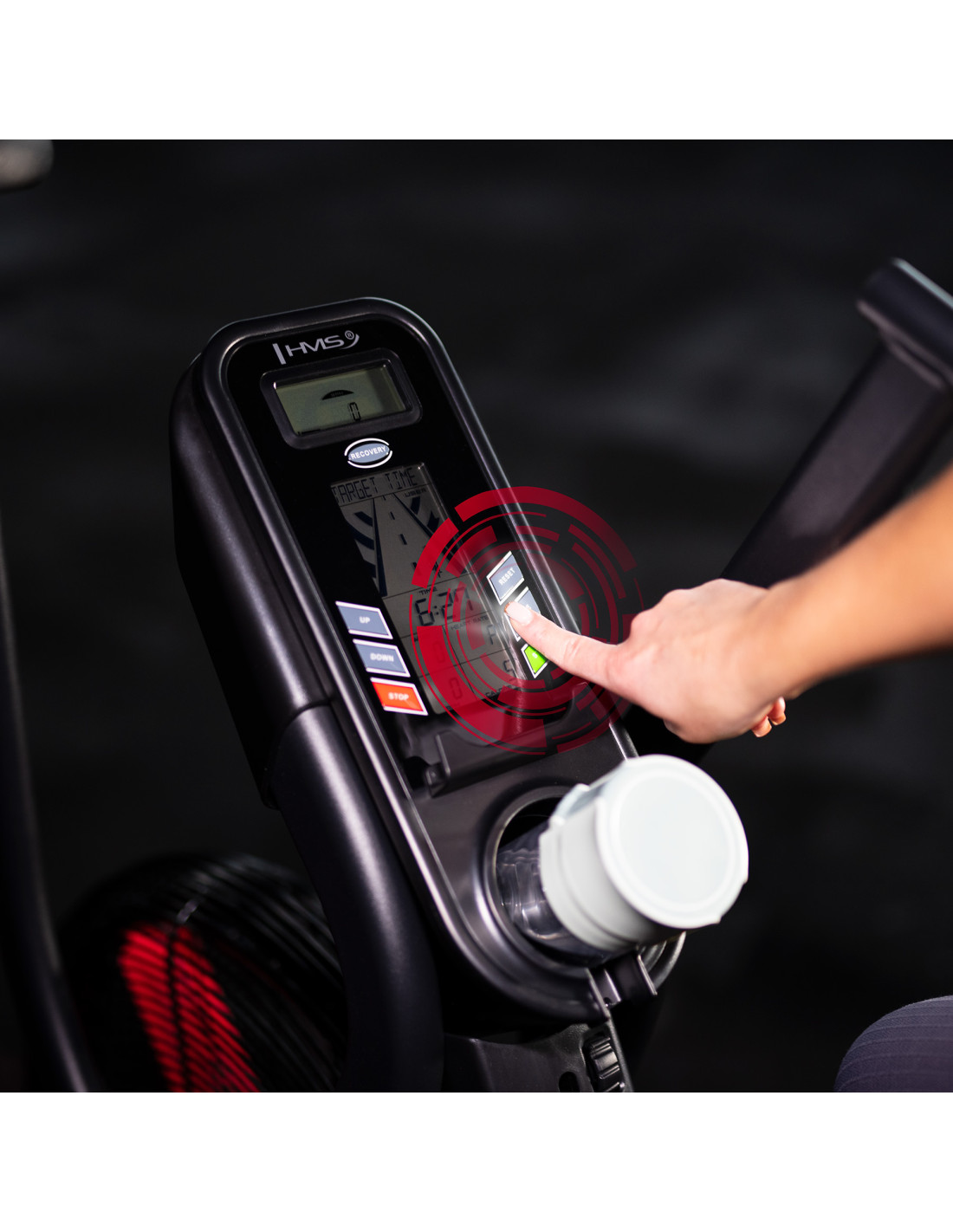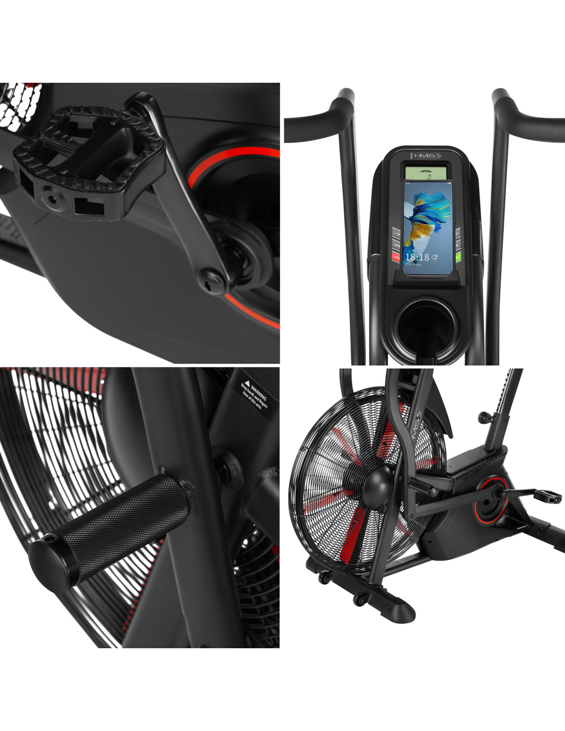 Das Airbike ist mit einem LCD-Display ausgestattet, mit dem Sie die wichtigsten Trainingsparameter kontinuierlich überwachen können: Zeit, Distanz, Geschwindigkeit, Puls, Kalorienverbrauch oder Umdrehungen pro Minute. Der vertikal und horizontal verstellbare Sattel ermöglicht eine präzise Anpassung der Position an Ihre Körpergröße und -form und sorgt für Komfort auch bei längerem Gebrauch. Praktische Extras wie ein Flaschenhalter, ein Handyhalter und Transporträder erhöhen den Bedienkomfort.